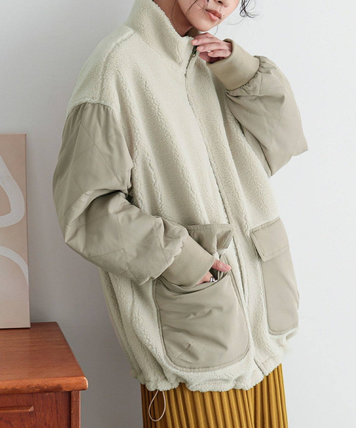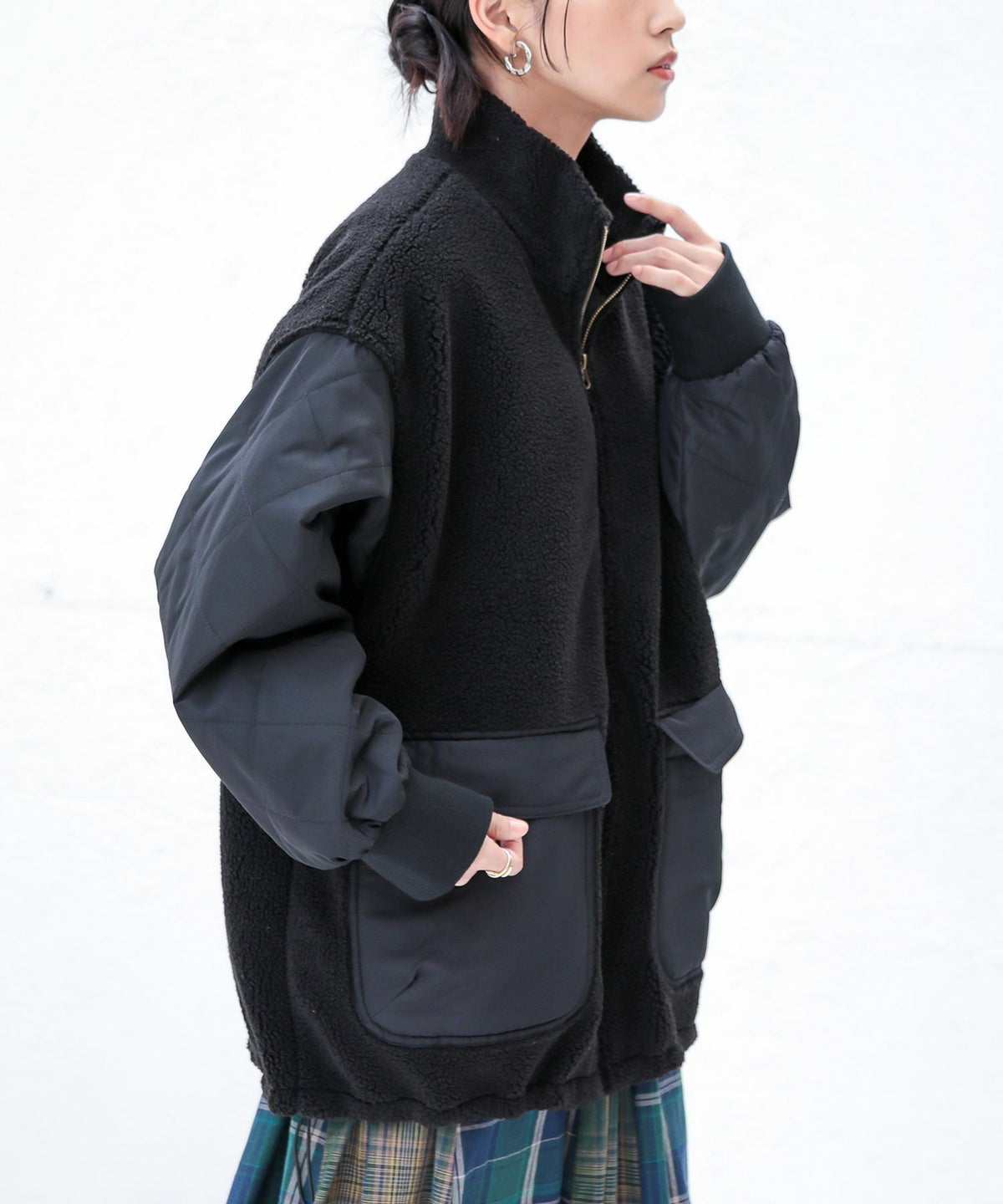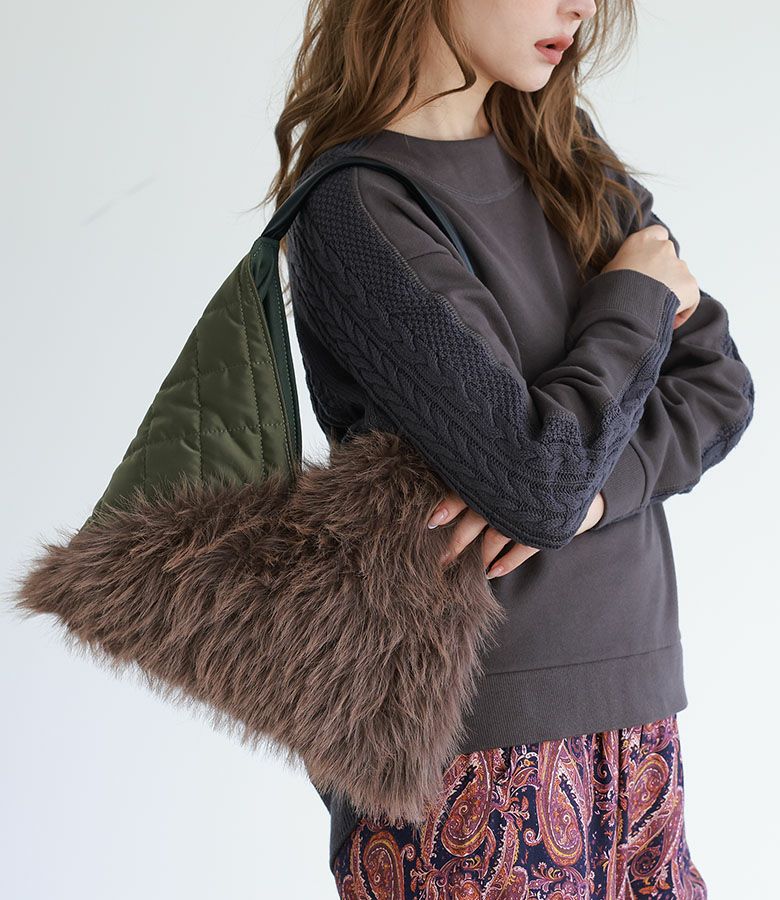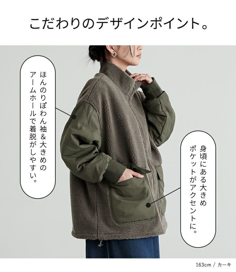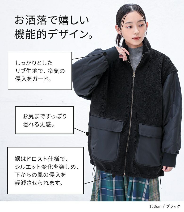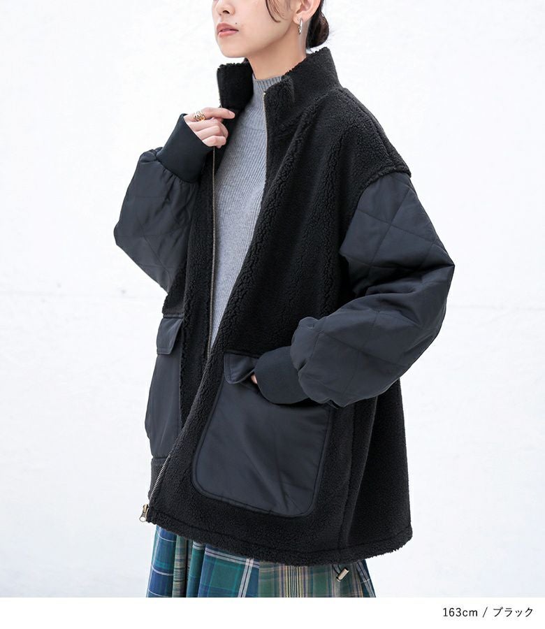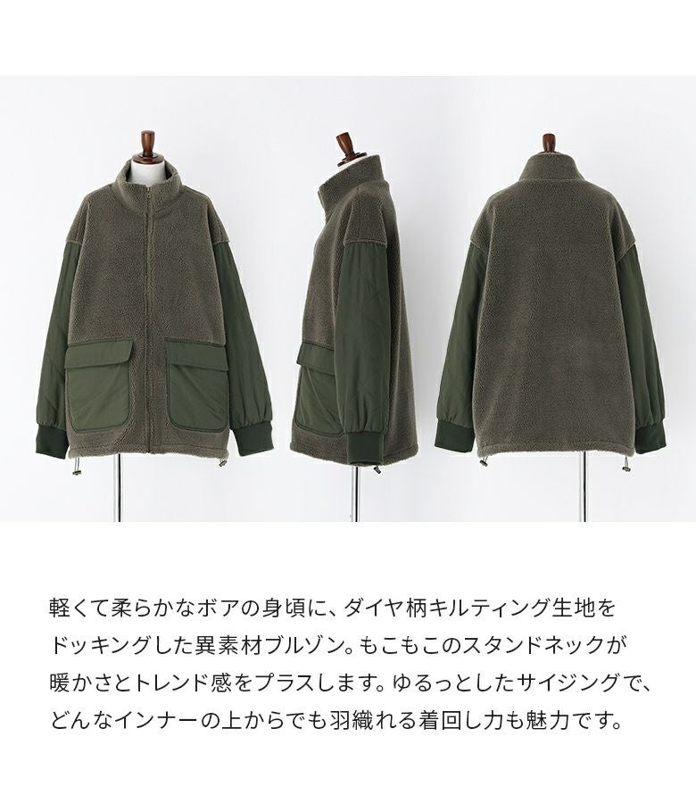 他の画像を見る 軽くて柔らかなボア×ダイヤ柄キルティング生地をドッキングした異素材ブルゾン。 『n'OrLABELボアキルティング切替ブルゾン』【メール便不可】【60】 ¥ 6,980 税込 4.00 (1)