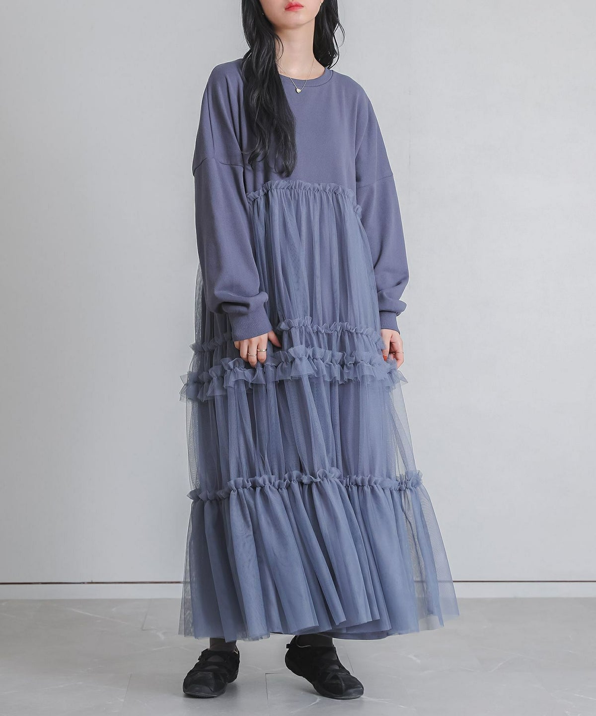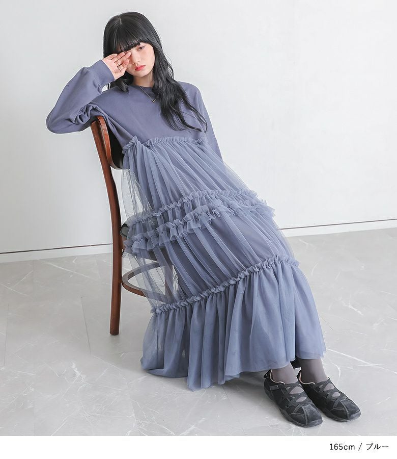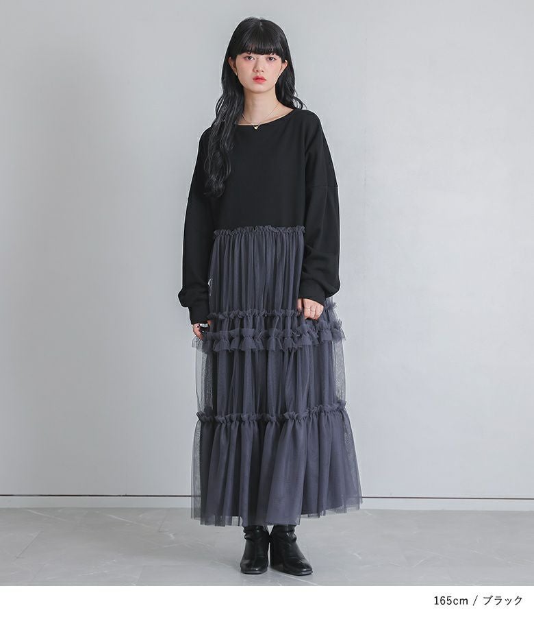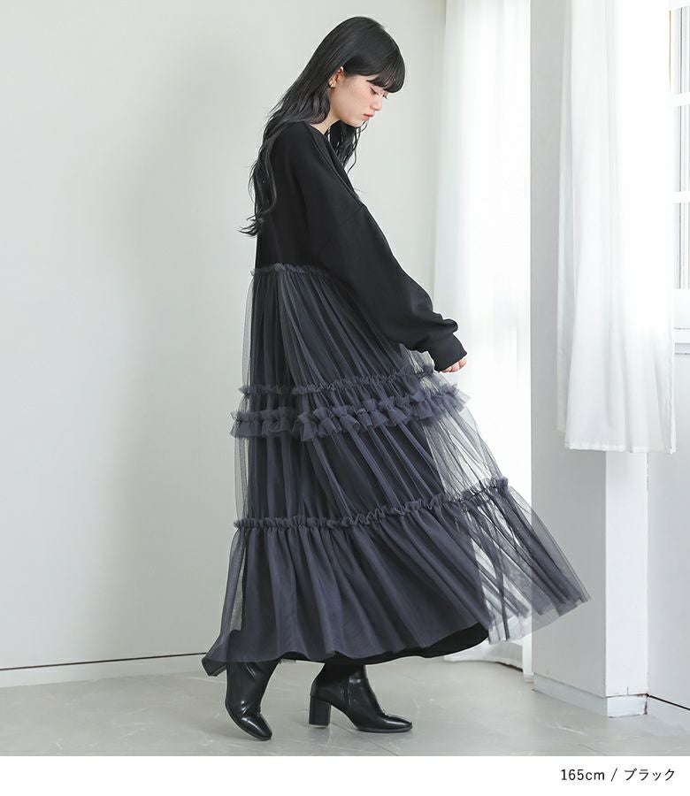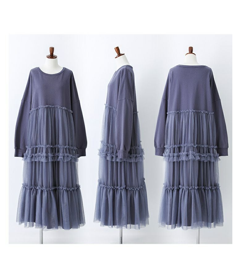 他の画像を見る 着心地の良いスウェット×ボリュームフリルチュールスカートをドッキングしたワンピース。 『somari imaginationチュールドッキングスウェットワンピース』【メール便不可】【30】 ¥ 7,980 税込 (0)