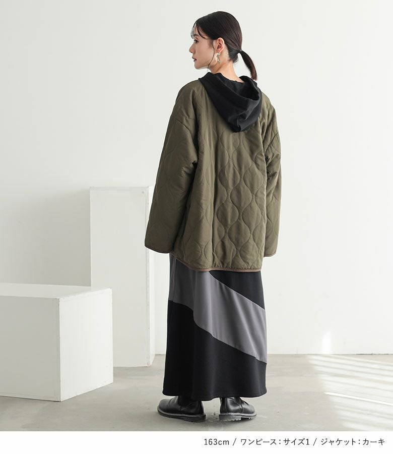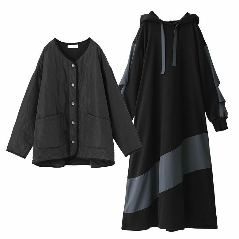 他の画像を見る 送料無料★届いてすぐにお洒落に変身2点コーデSET♪ 【送料無料】『ノーカラーキルティングジャケット×異素材切替フード付きワンピースコーデ2点SET』【メール便不可】【70】 ¥ 10,960 税込 (0)