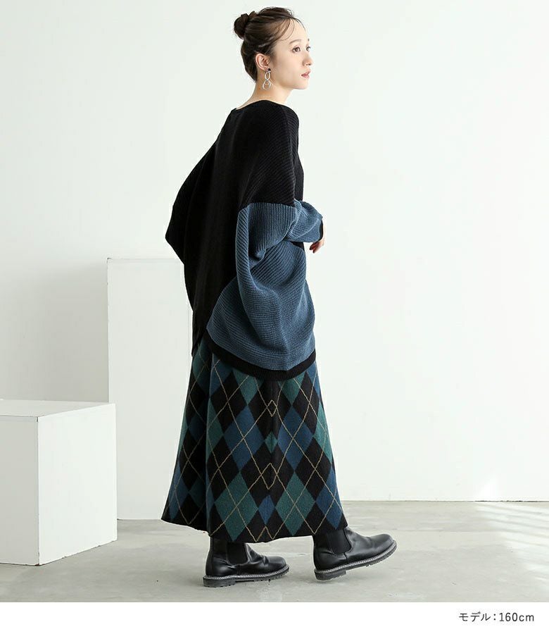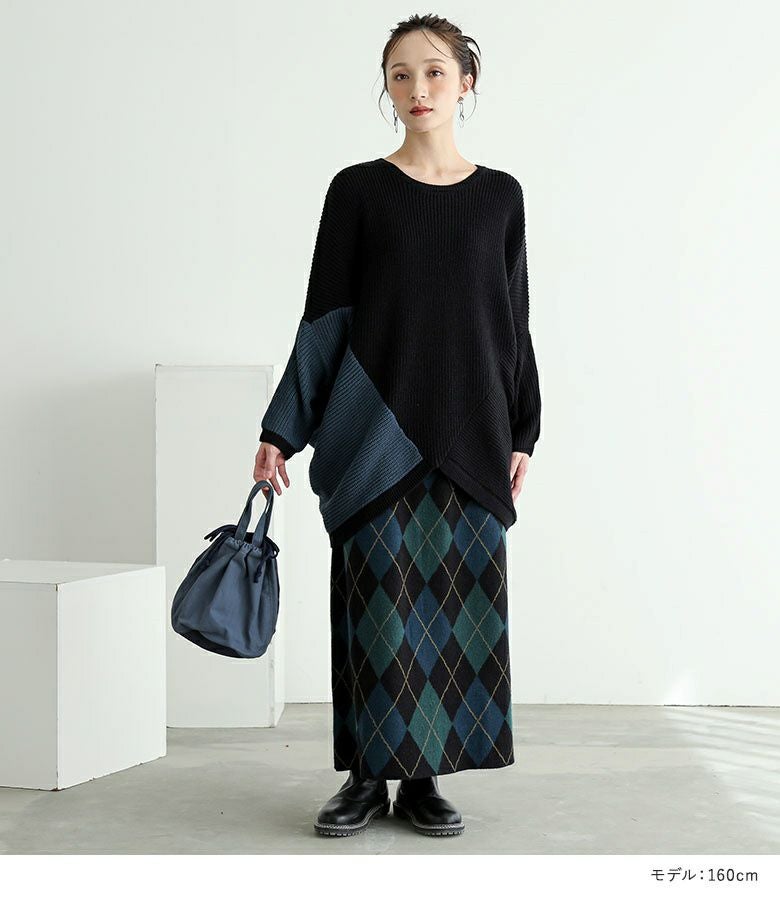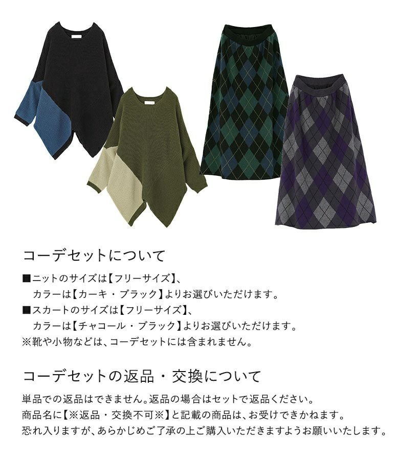 他の画像を見る 送料無料★届いてすぐにお洒落に変身2点コーデSET♪ 【送料無料】『変形ドルマン配色ニット×アーガイルニットスカートコーデ2点SET』【メール便不可】【50】 ¥ 9,570 税込 (0)
