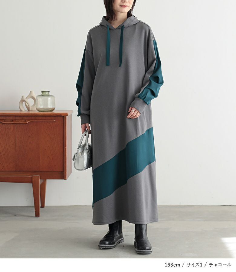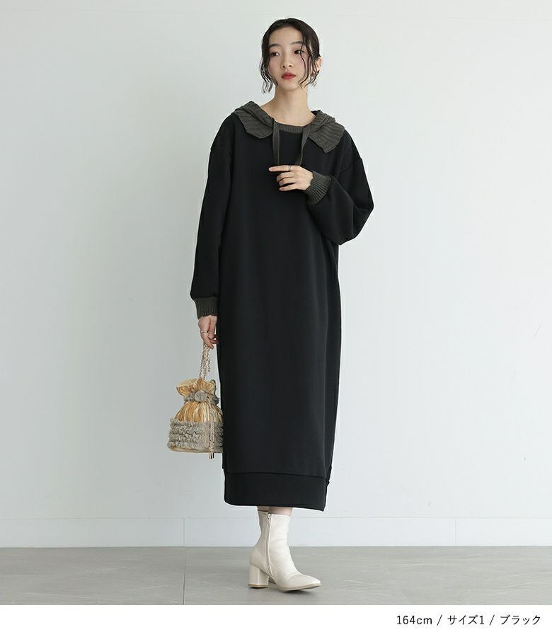 他の画像を見る フードと袖口はニットで編み立てバラクラバをドッキングさせたようなワンピース。 『somari imagination裏起毛ニットフード付きワンピース』【メール便不可】【50】 ¥ 8,980 税込 5.00 (1)