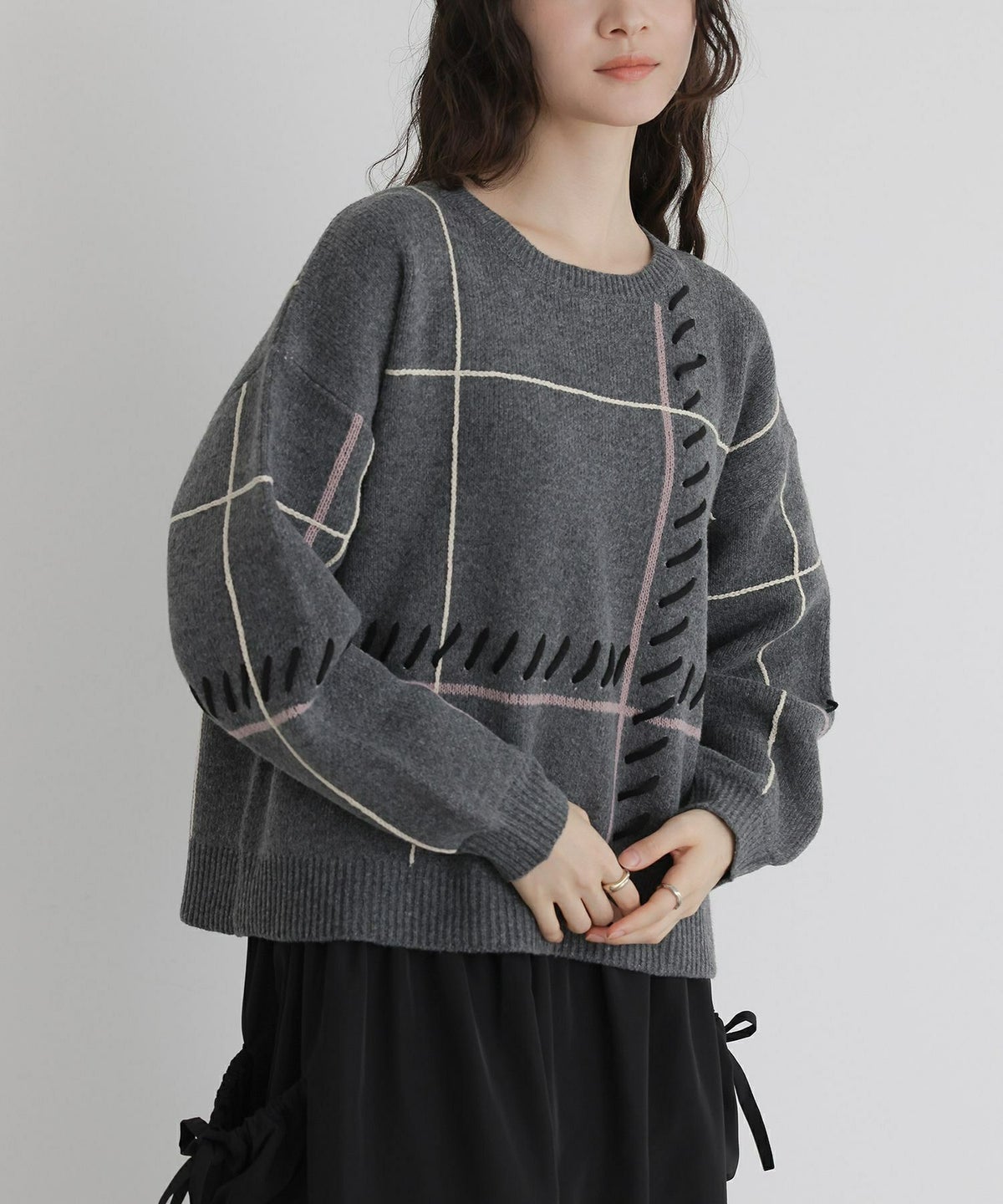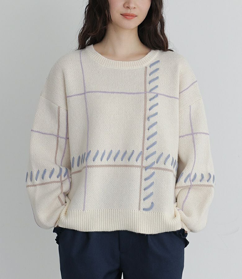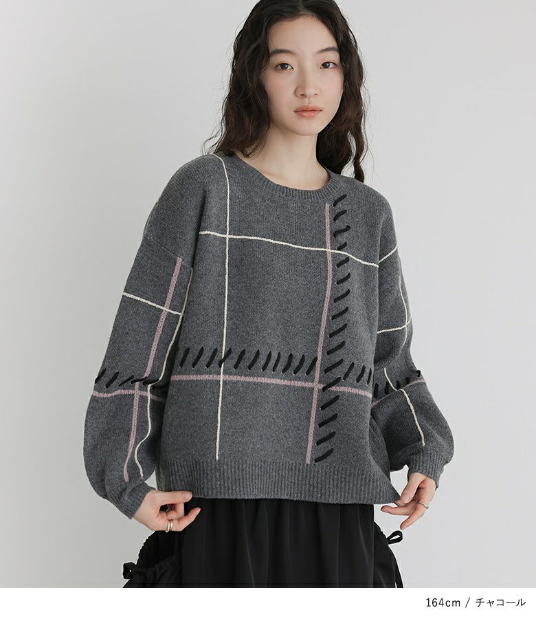他の画像を見る 3カラー&3種類のラインで作ったチェック柄のニットトップス。 『somari imaginationジャカードチェックニットプルオーバー』【メール便不可】【30】 ¥ 6,980 税込 4.00 (1)