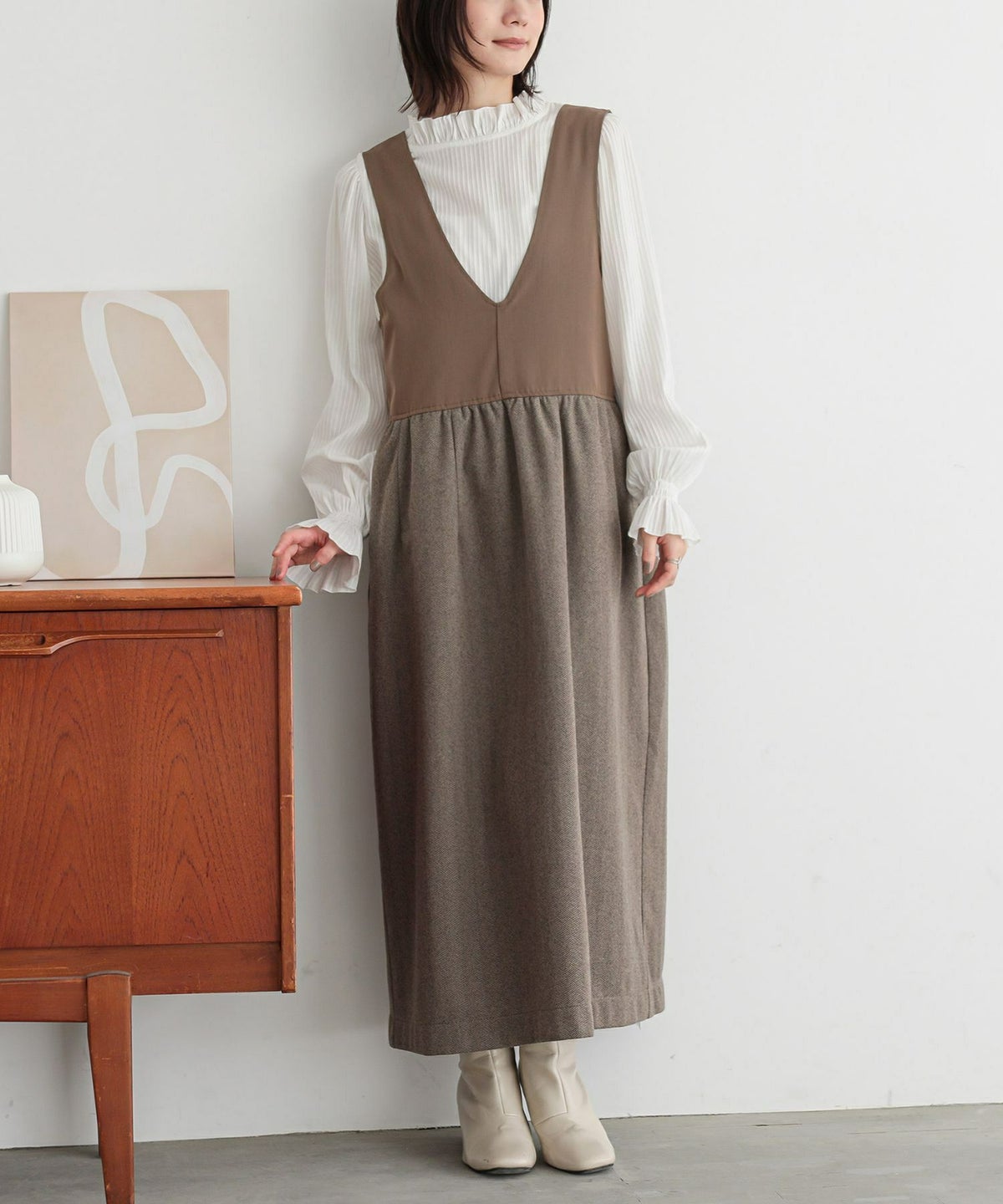 他の画像を見る 選べる2サイズ展開!無地とヘリンボーン柄の異素材ドッキングジャンパースカート。 『n'OrLABELヘリンボーンドッキングジャンパースカート』【メール便不可】【20】 ¥ 5,980 税込 (0)