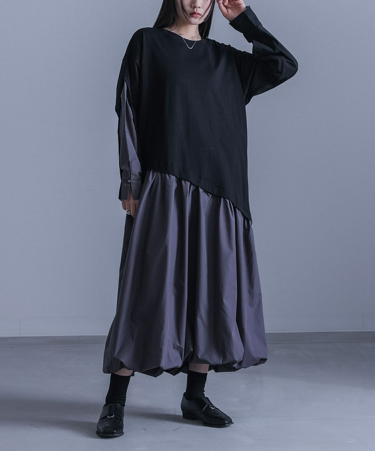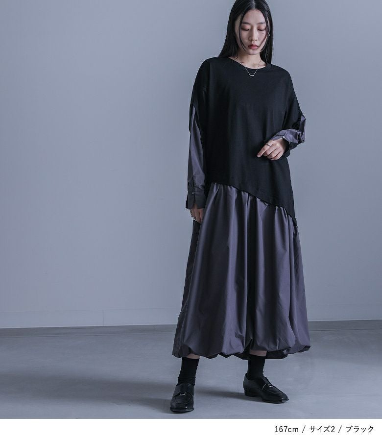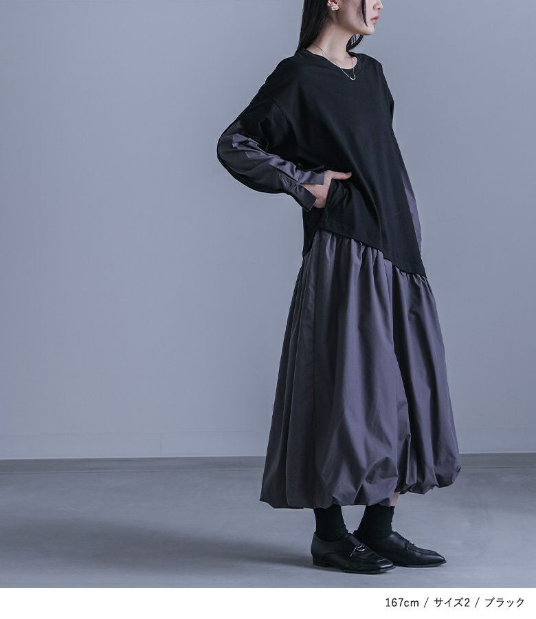 他の画像を見る 選べる2サイズ展開!一枚でお洒落が決まるモードなドッキングワンピース。 『kOhAKU異素材ドッキングバルーンワンピース』【メール便不可】【30】 ¥ 7,980 税込 4.00 (1)