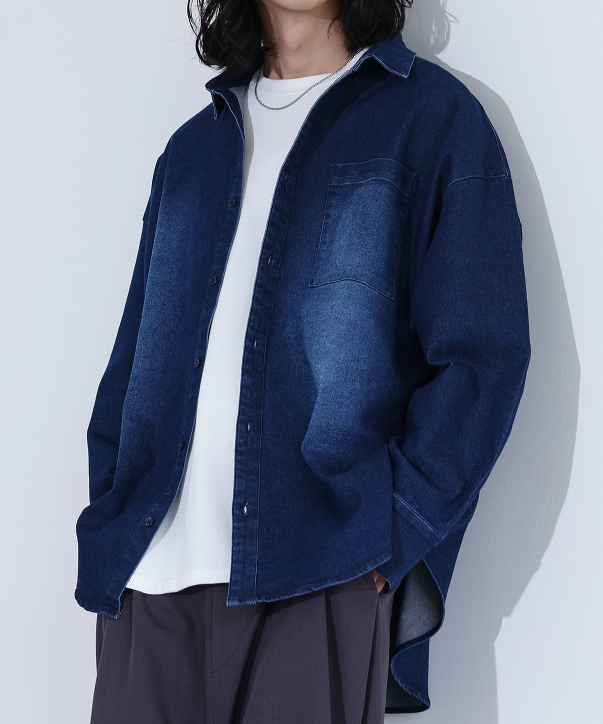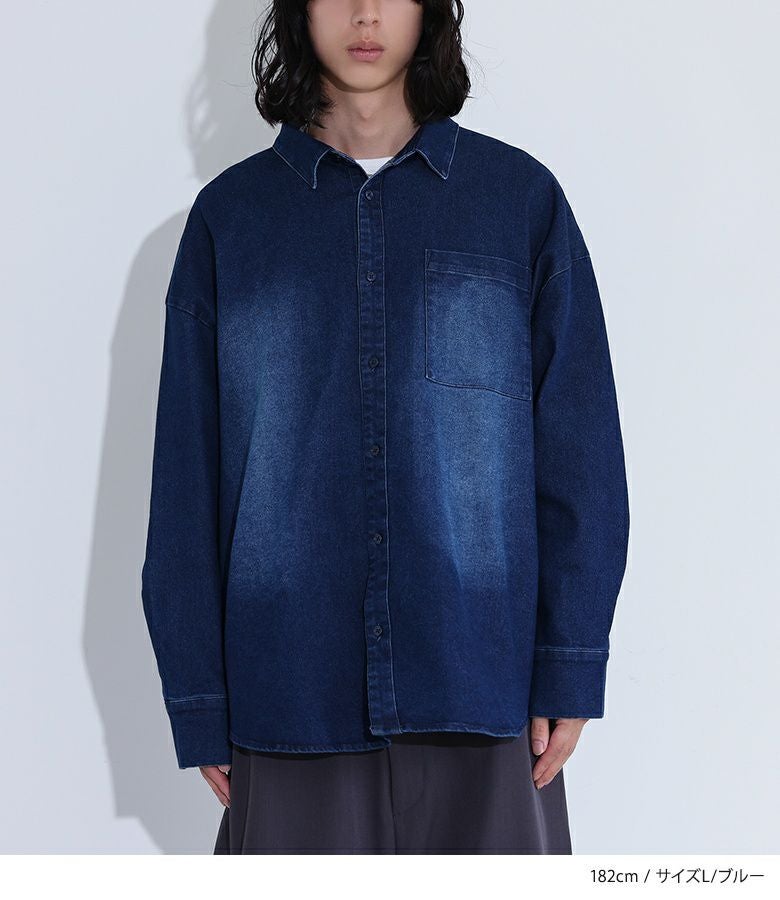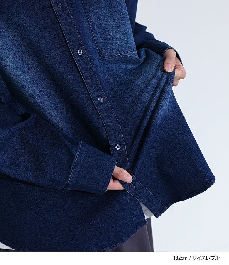 他の画像を見る 【30%OFF】選べる2サイズ展開!トレンド感のあるオーバーサイズのストレッチデニムシャツ。 『MDRオーバーサイズストレッチデニムシャツ』※返品交換不可※【メール便不可】【20】 販売期間 2026/03/05 0:00 〜 2026/03/10 23:59 定価 ¥ 5,980 のところ ¥ 4,185 税込 (0)