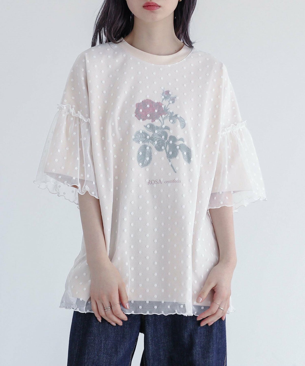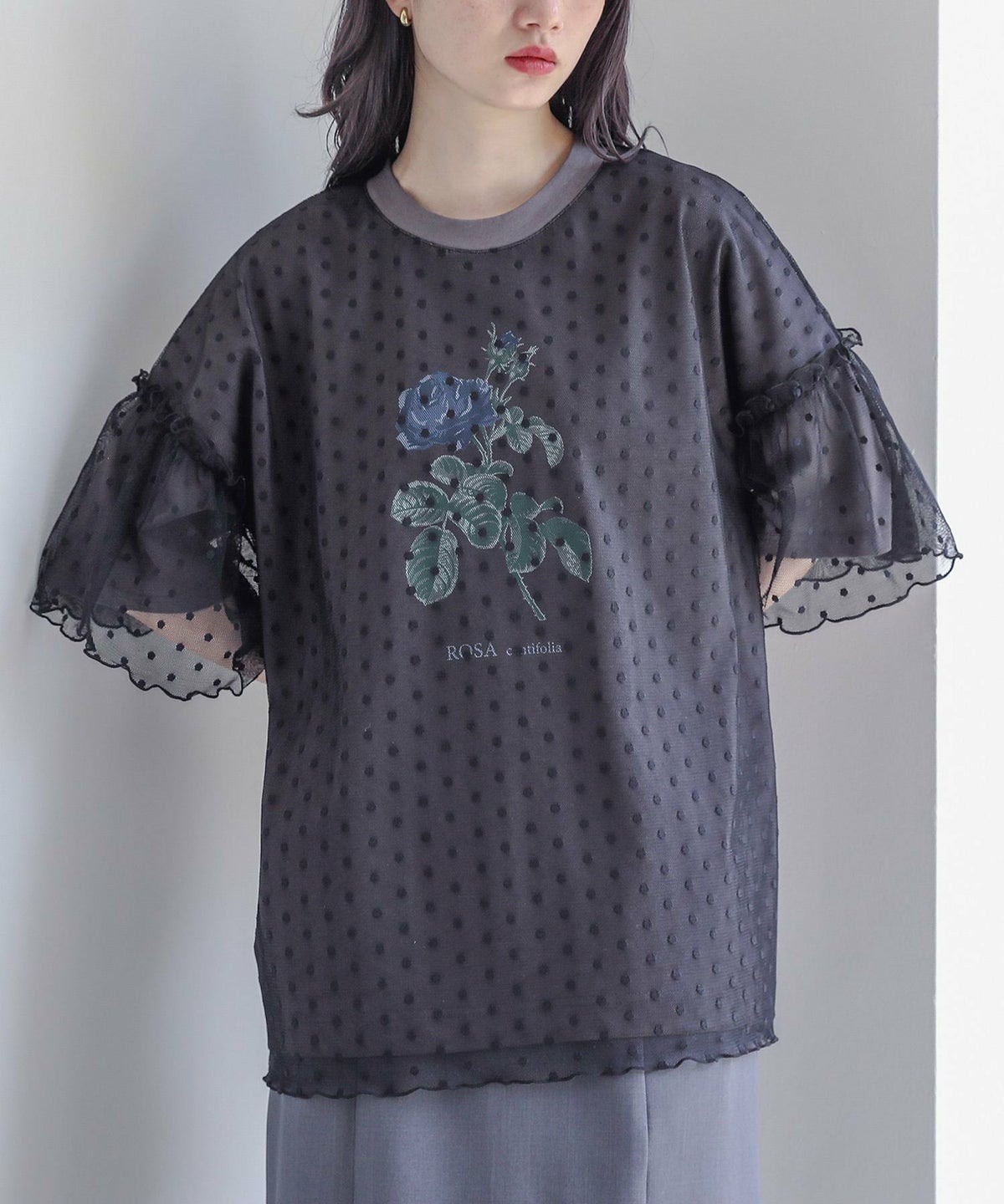他の画像を見る 選べる2サイズ展開!チュールをローズ柄プリントに重ねた異素材のTシャツ。 『somari imagination冷感チュールドッキングカットソー』※メール便可※【10】 ¥ 5,980 税込 (0)
