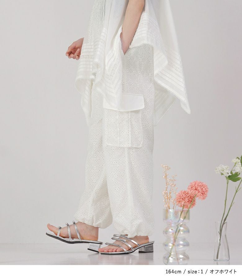 他の画像を見る 選べるM~3Lサイズ展開!甘すぎない大人のコットンレースカーゴパンツ。 【送料無料】『somari imaginationコットンレースカーゴパンツ』【メール便不可】【30】 ¥ 8,980 税込 4.33 (3)