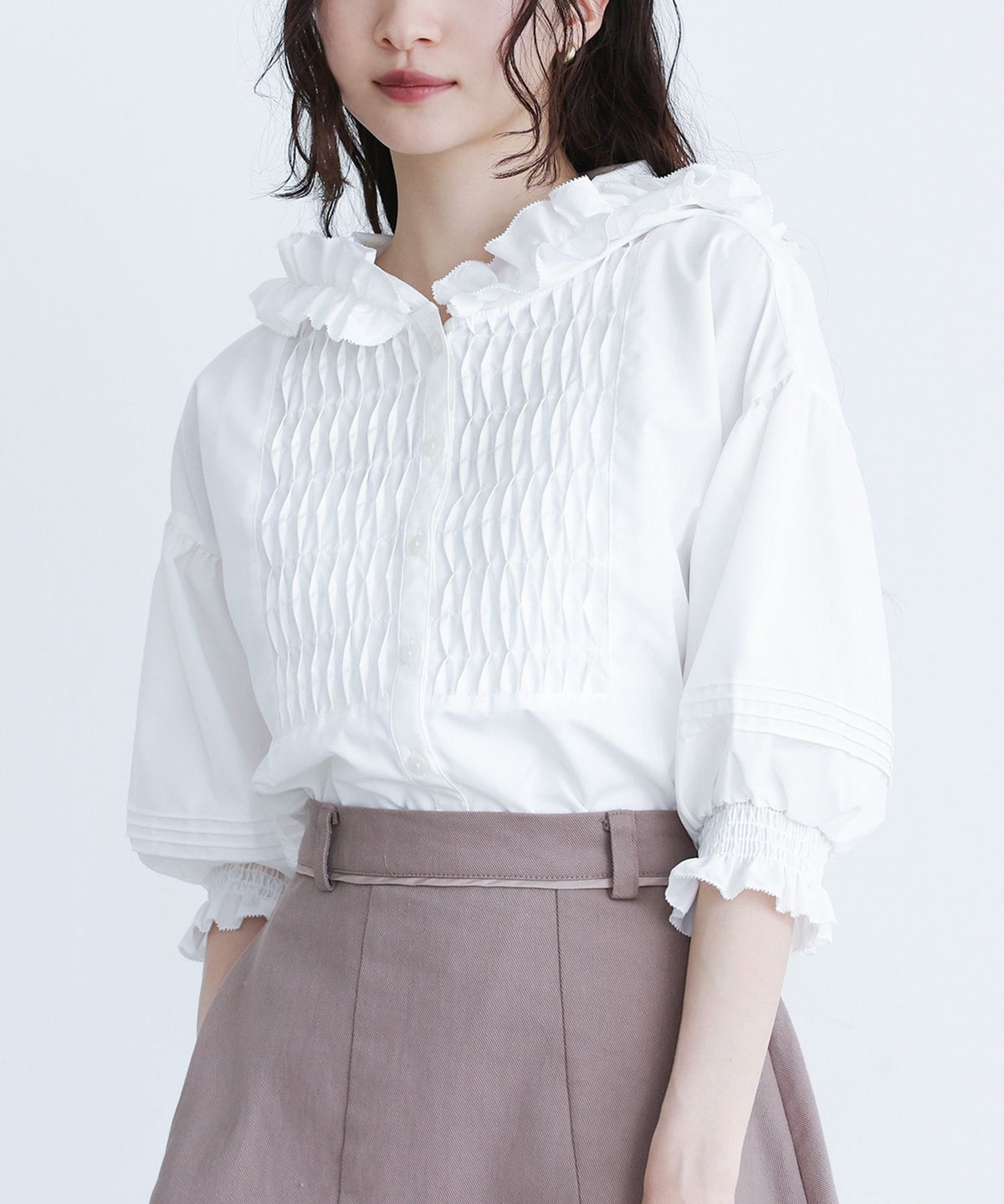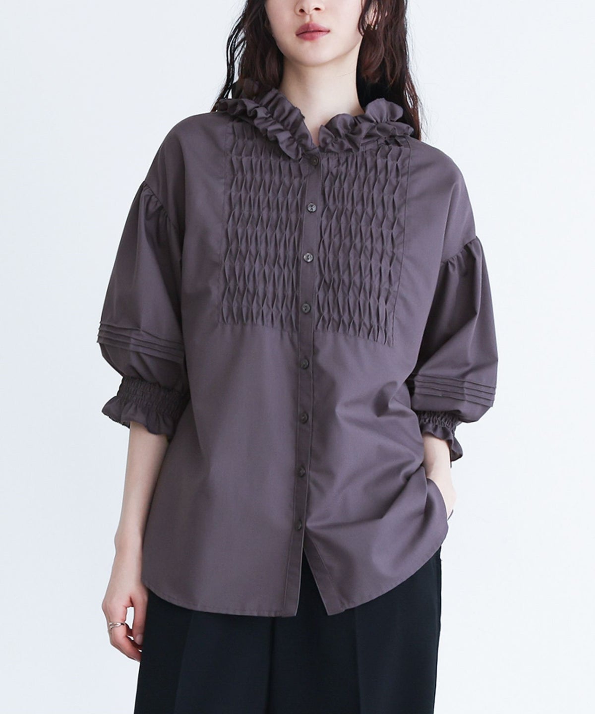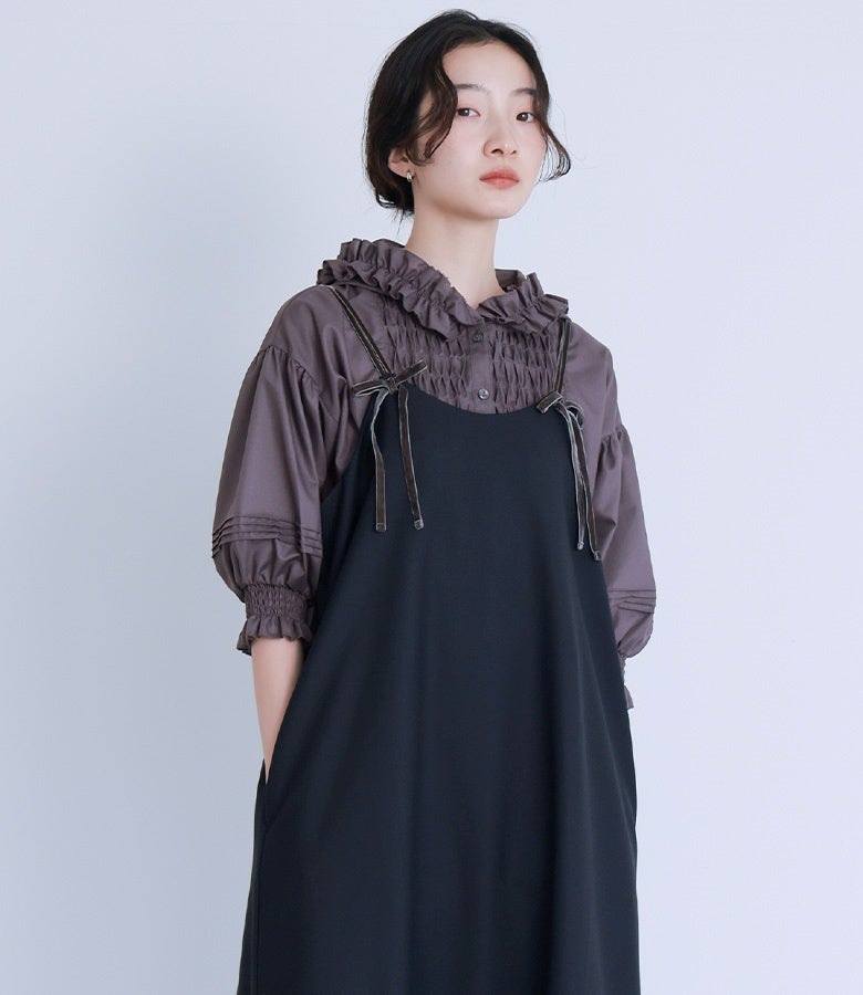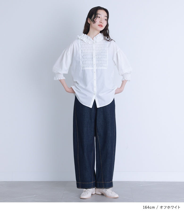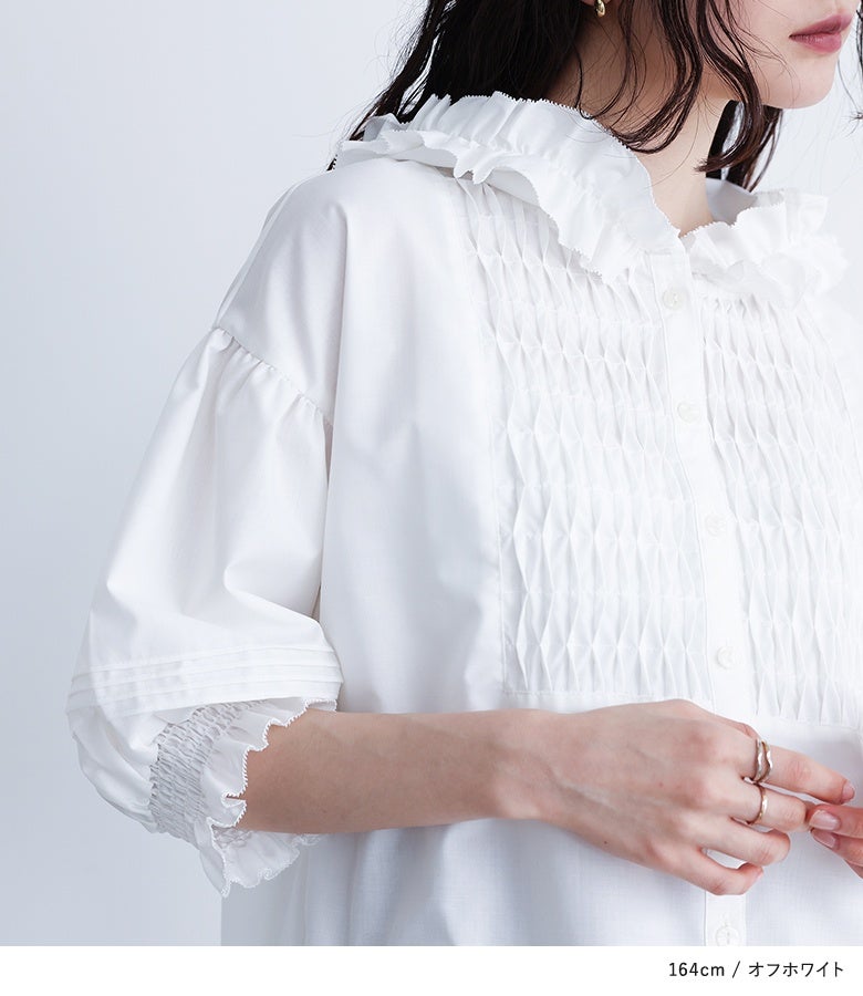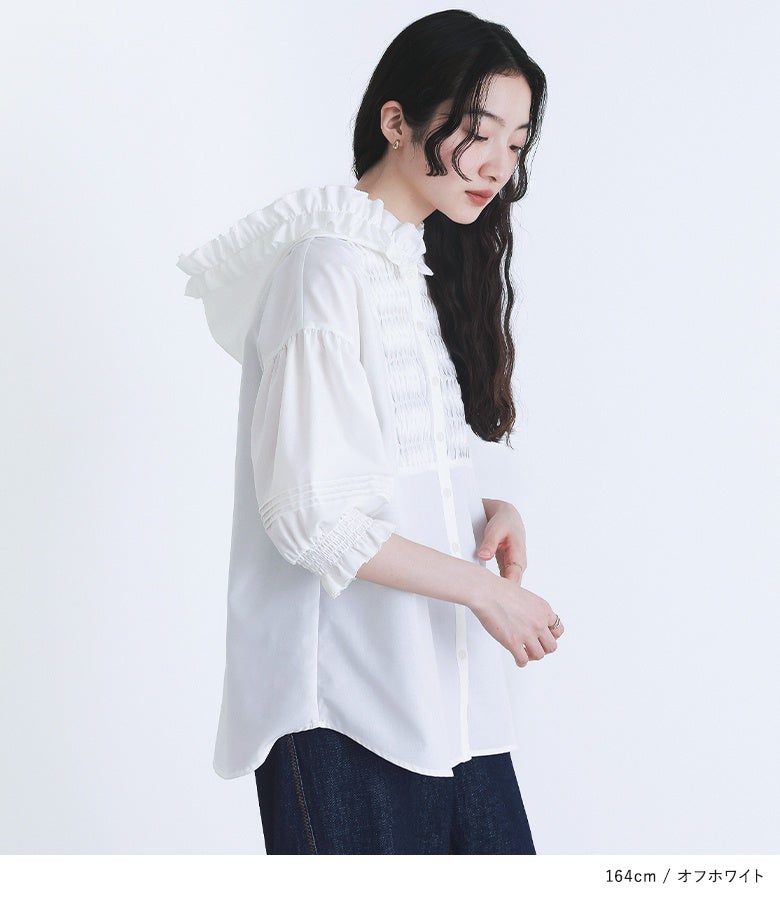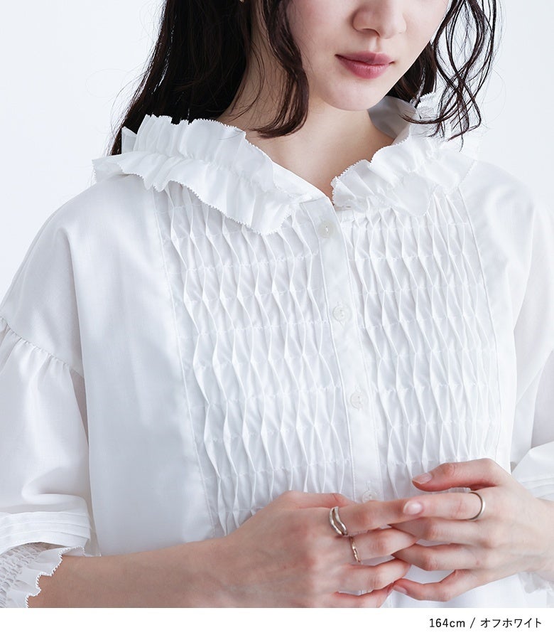 他の画像を見る スモッキング風に見せたブザム切り替えがポイントのブラウス。 『somari imaginationフリルフードピンタックブラウス』※メール便可※【10】 ¥ 5,980 税込 4.17 (6)