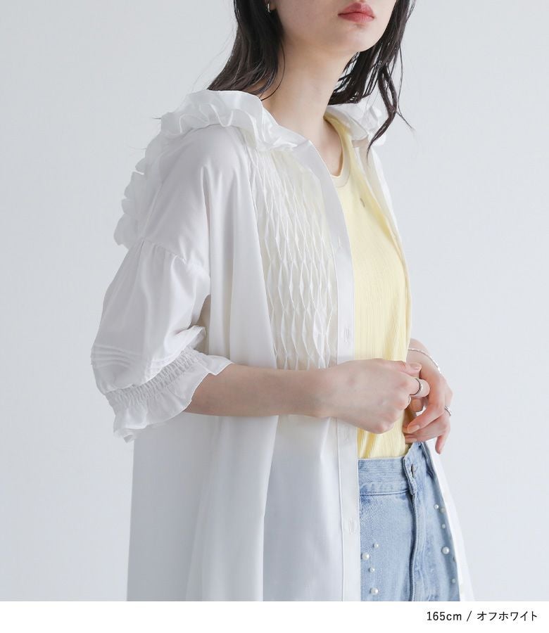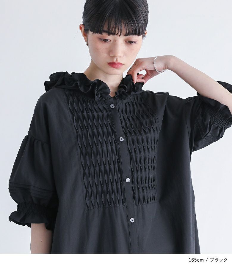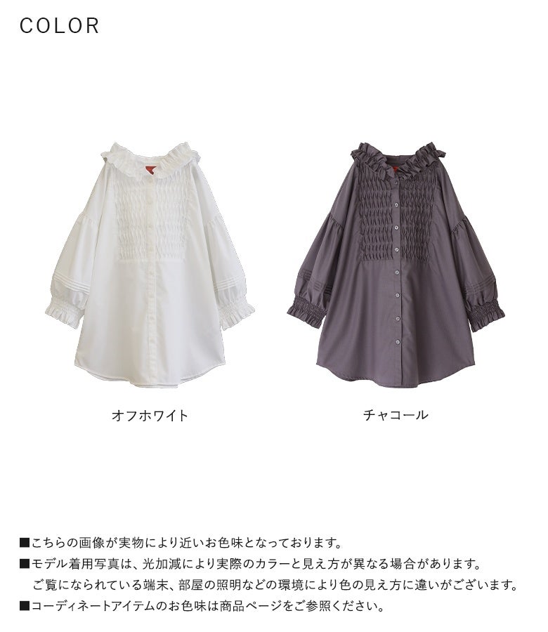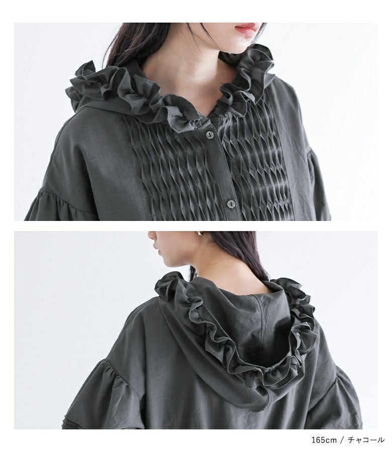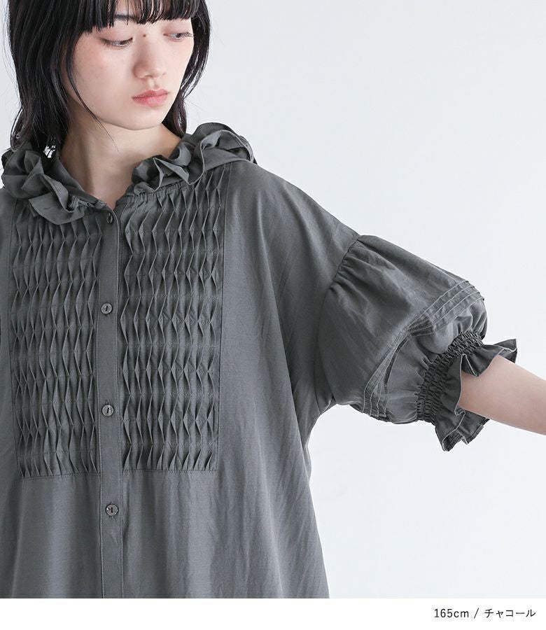他の画像を見る ブザム切り替えがポイントのシャツワンピース。 『somari imaginationフリルフードピンタックシャツワンピース』【メール便不可】【30】 ¥ 6,980 税込 5.00 (2)