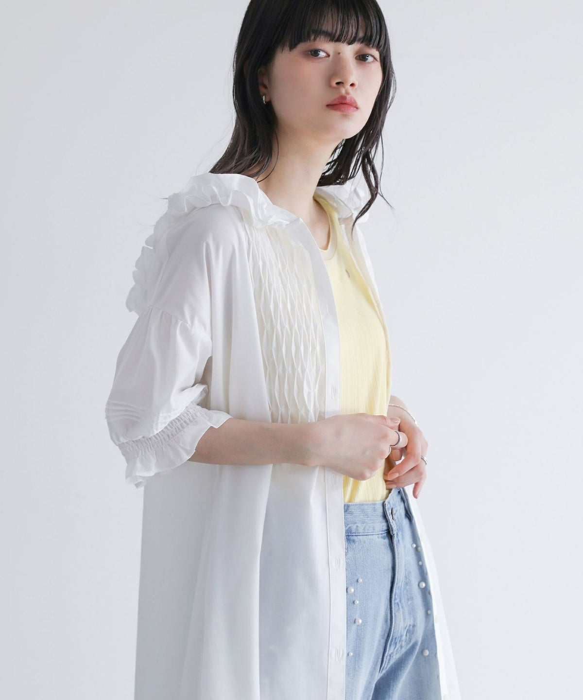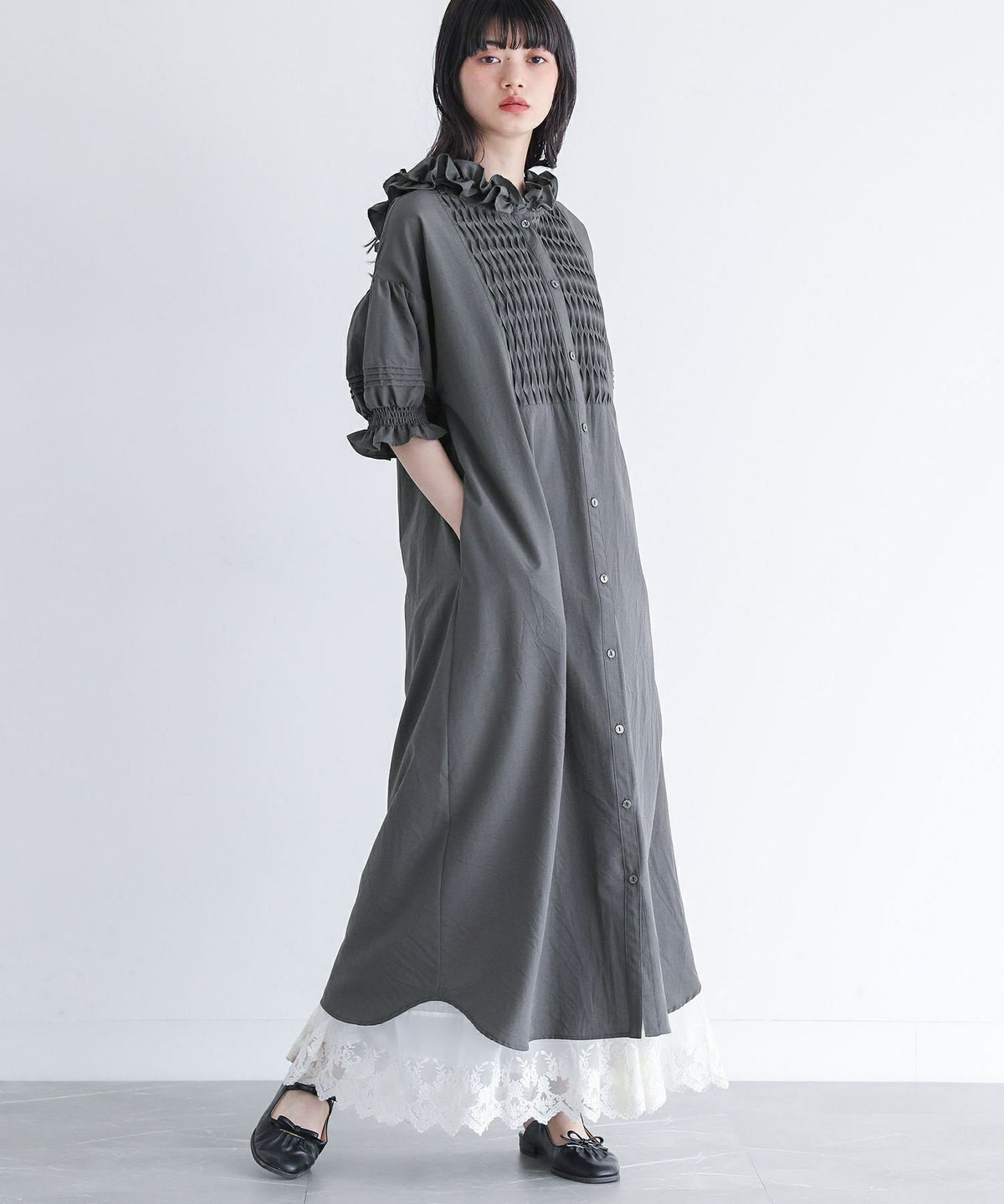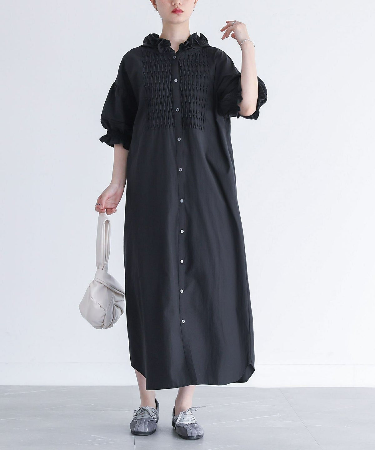 他の画像を見る ブザム切り替えがポイントのシャツワンピース。 『somari imaginationフリルフードピンタックシャツワンピース』【メール便不可】【30】 ¥ 6,980 税込 5.00 (2)