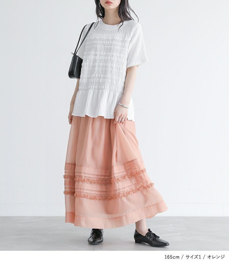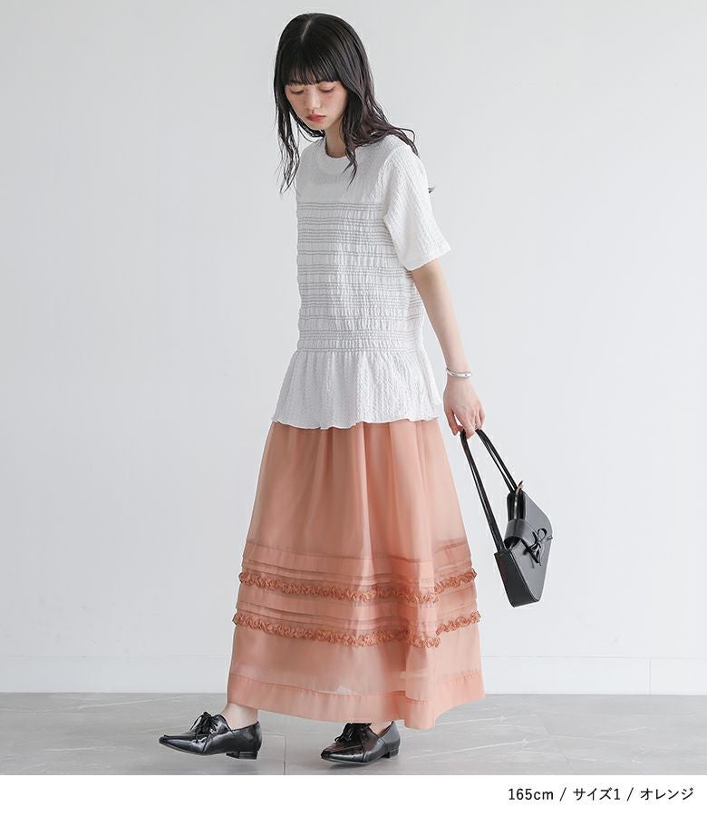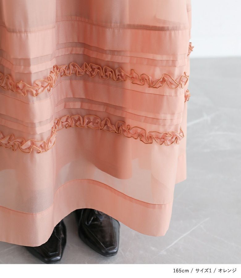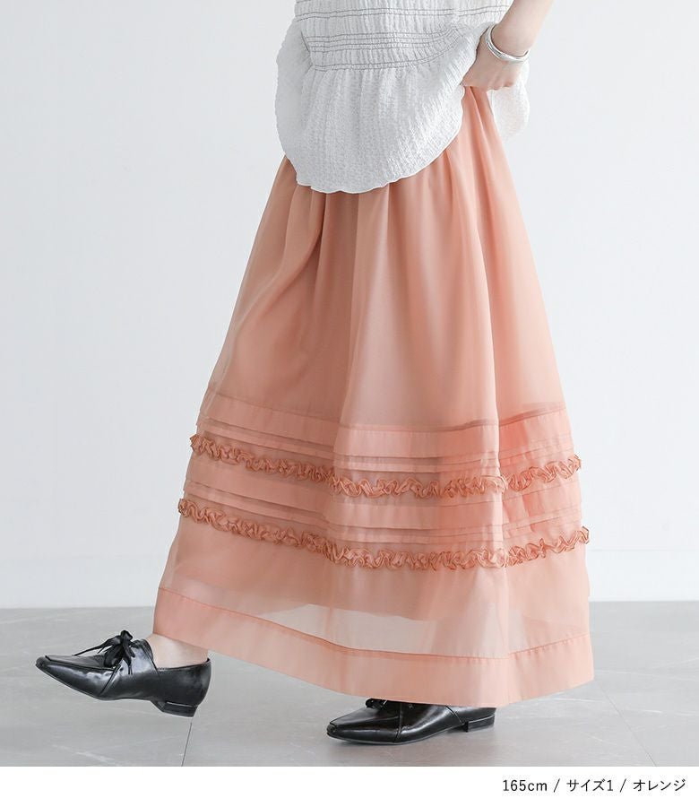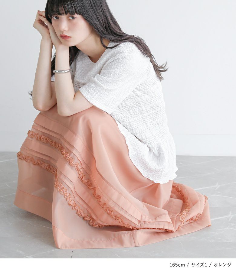 他の画像を見る 選べる2サイズ展開!オーガンジー生地を使用した、透け感のある軽やかなスカート。 『somari imaginationシアータックフリルスカート』【メール便不可】【20】 ¥ 6,980 税込 (0)