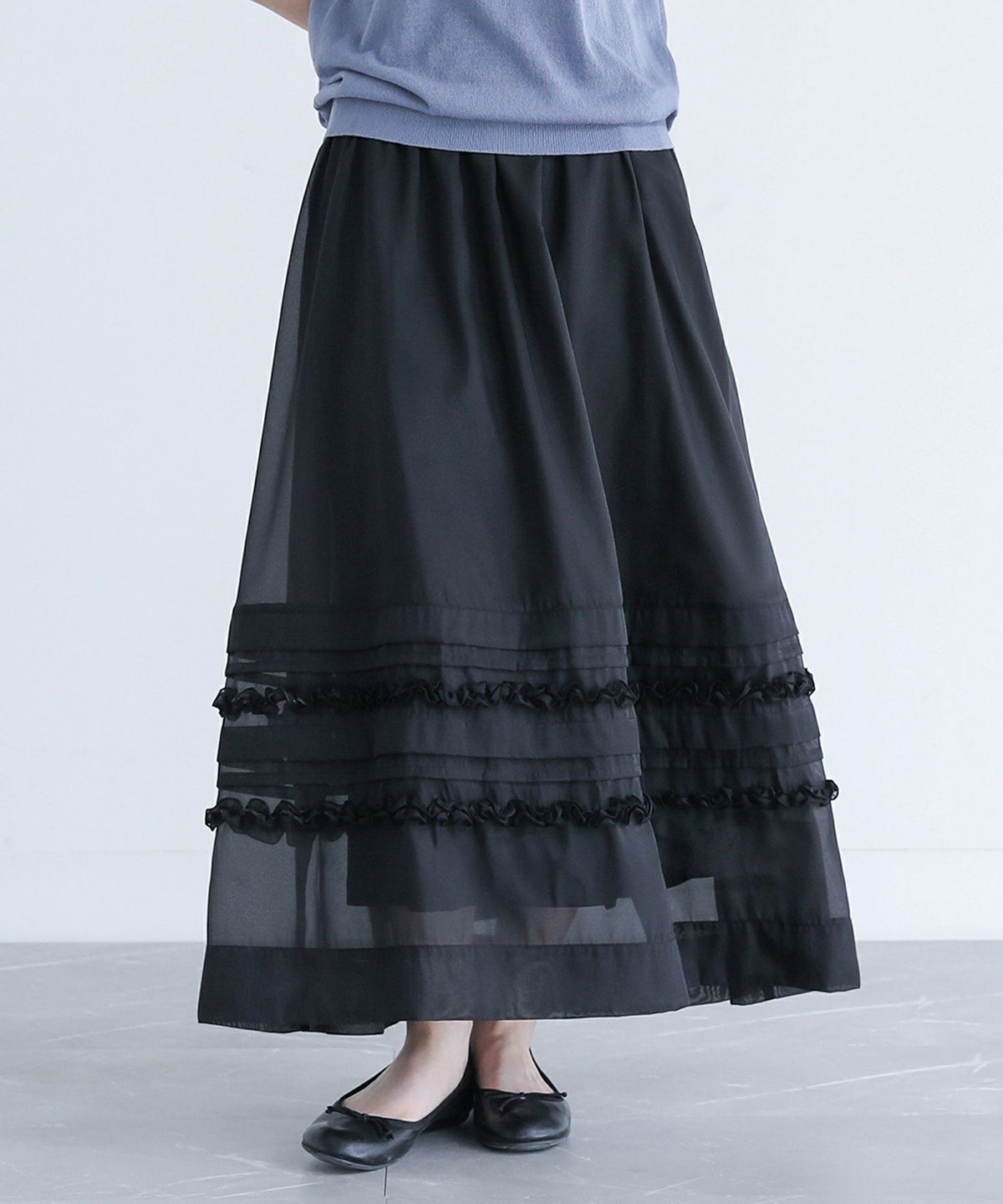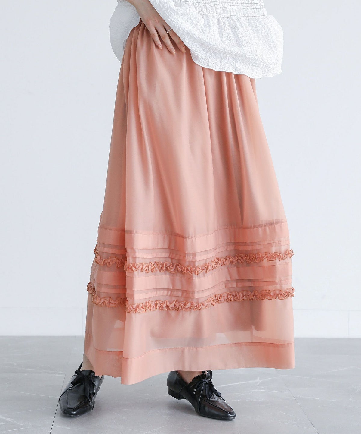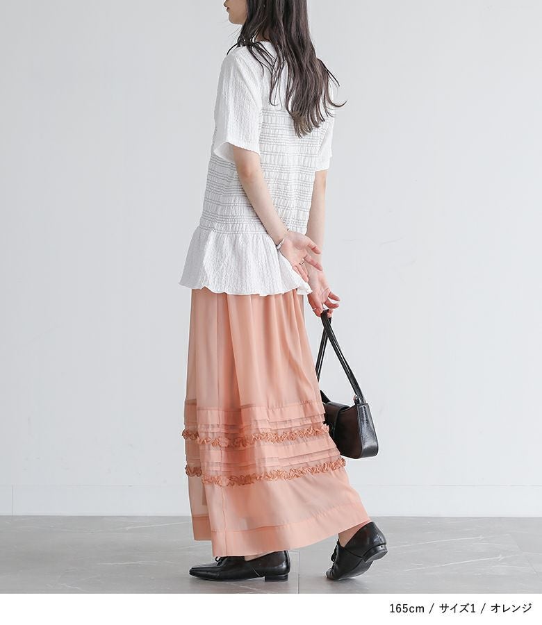 他の画像を見る 選べる2サイズ展開!オーガンジー生地を使用した、透け感のある軽やかなスカート。 『somari imaginationシアータックフリルスカート』【メール便不可】【20】 ¥ 6,980 税込 (0)