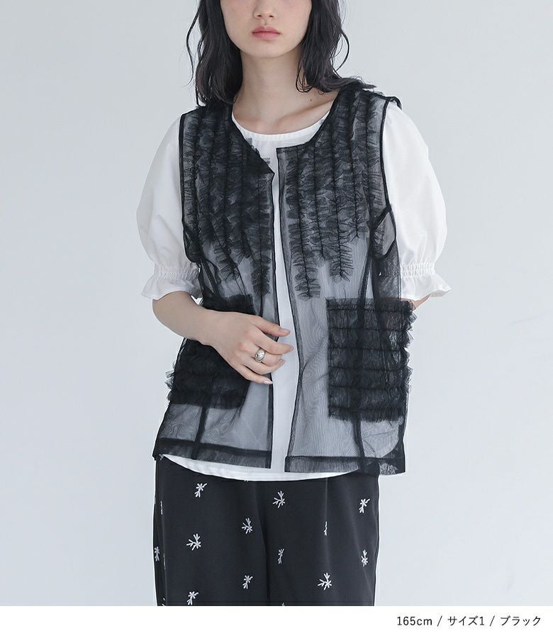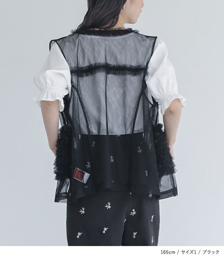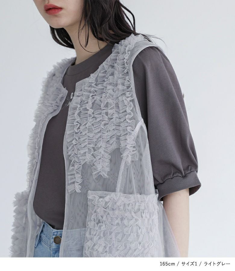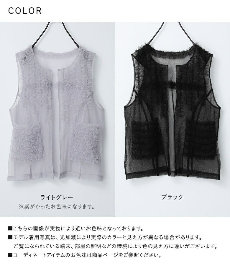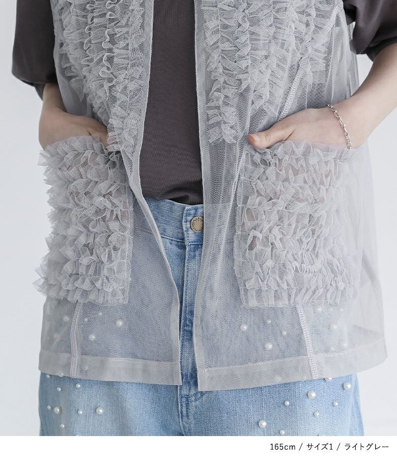 他の画像を見る 選べる2サイズ展開!さらっと羽織るだけで華やかな印象をプラスするチュールベスト。 『somari imaginationチュールフリルベスト』※メール便可※【10】 ¥ 4,980 税込 (0)