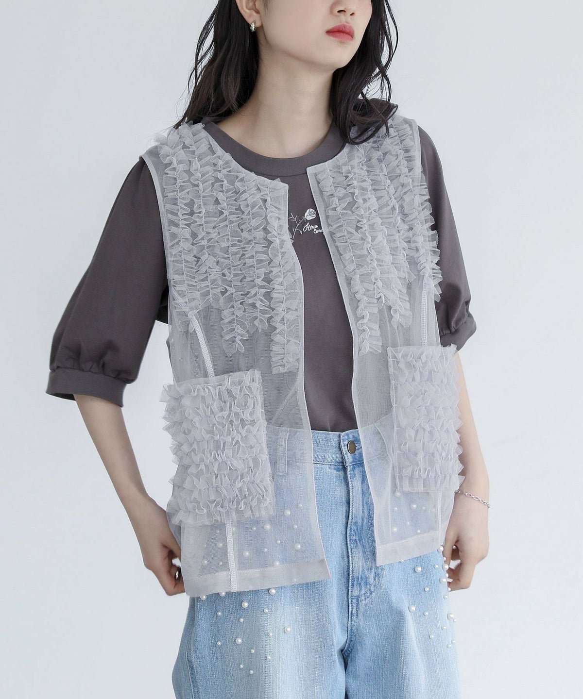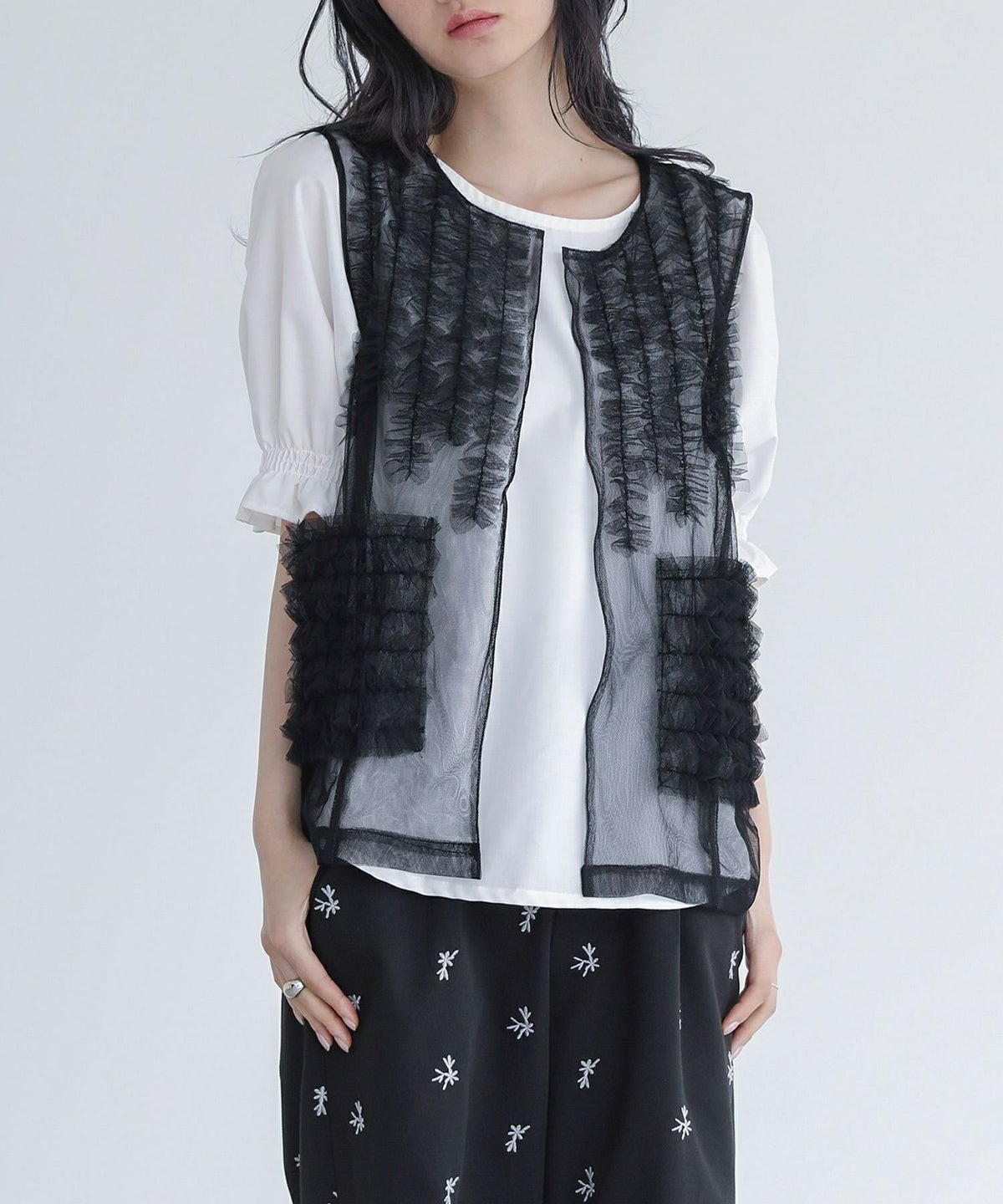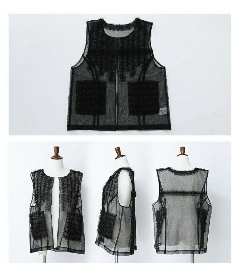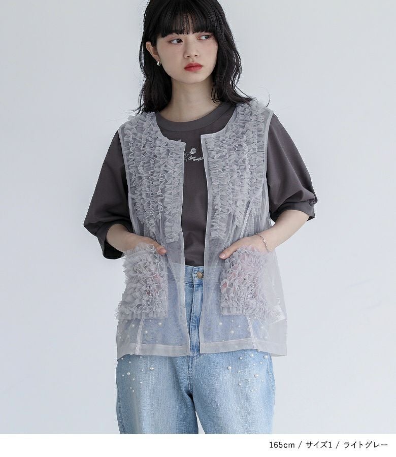 他の画像を見る 選べる2サイズ展開!さらっと羽織るだけで華やかな印象をプラスするチュールベスト。 『somari imaginationチュールフリルベスト』※メール便可※【10】 ¥ 4,980 税込 (0)