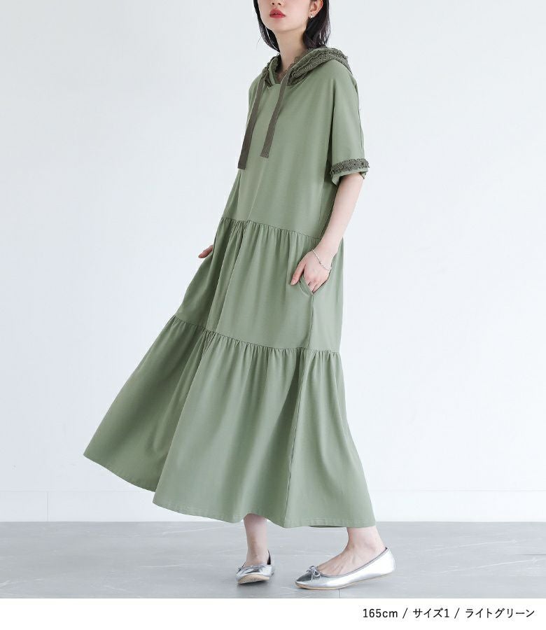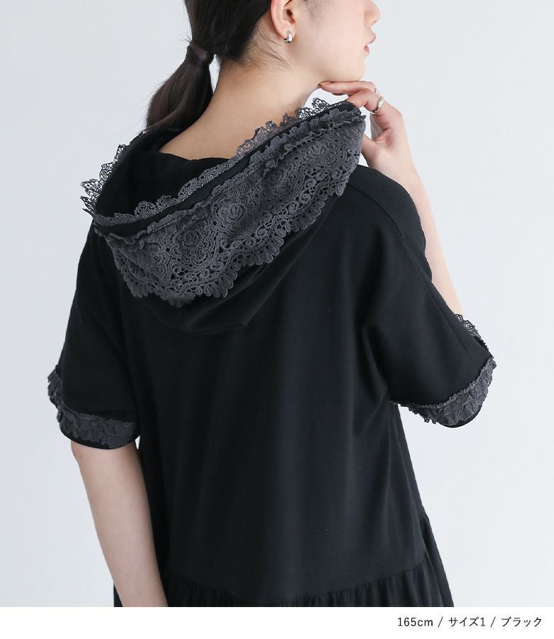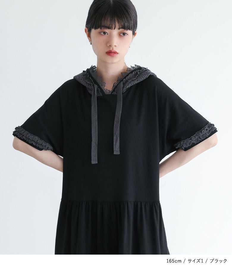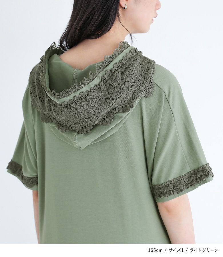 他の画像を見る 選べる2サイズ展開!フードと袖口にレースをあしらったカットソーワンピース。 『somari imaginationレースフード半袖カットワンピース』【メール便不可】【30】 ¥ 6,980 税込 (0)