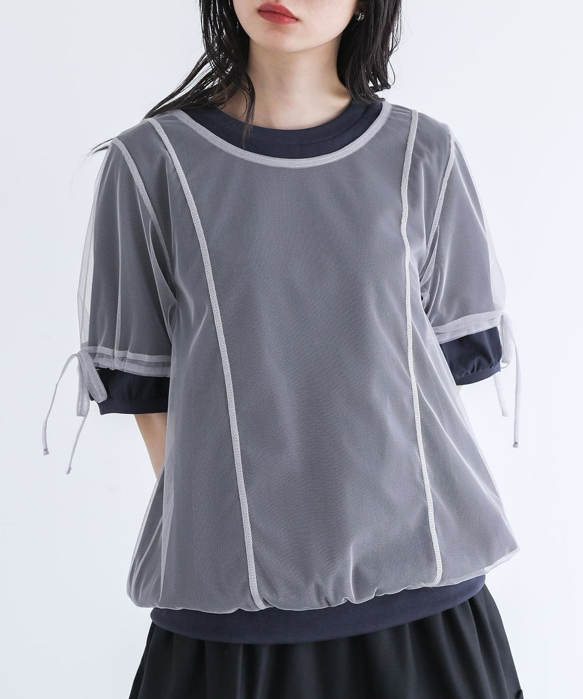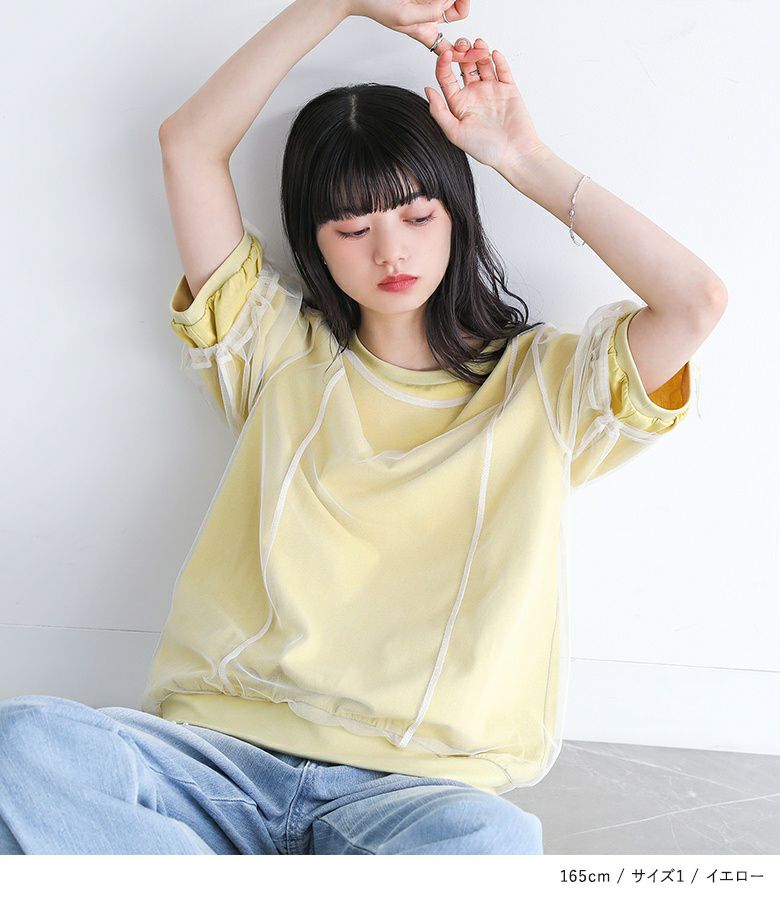 他の画像を見る 選べる2サイズ展開!カットソー生地の上にチュールを重ねたデザインのトップス。 『somari imaginationチュールレイヤードカットソー』※メール便可※【10】 ¥ 4,590 税込 4.00 (1)