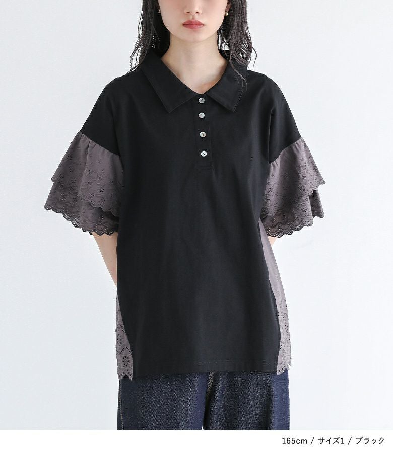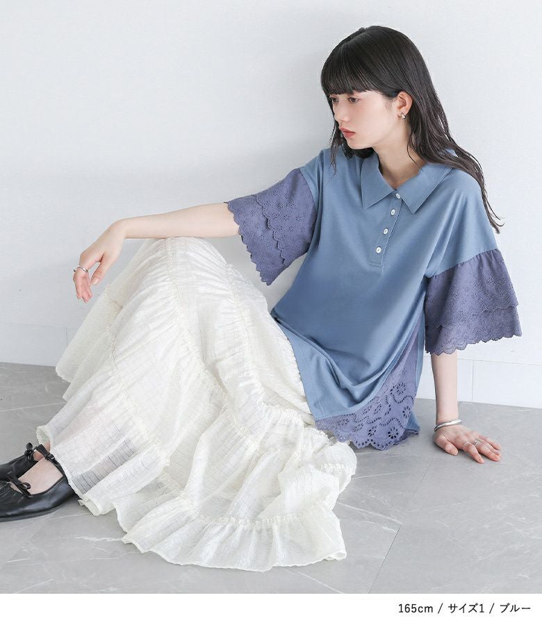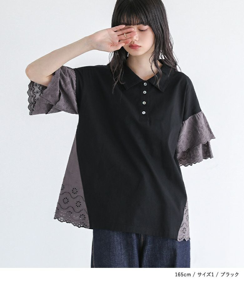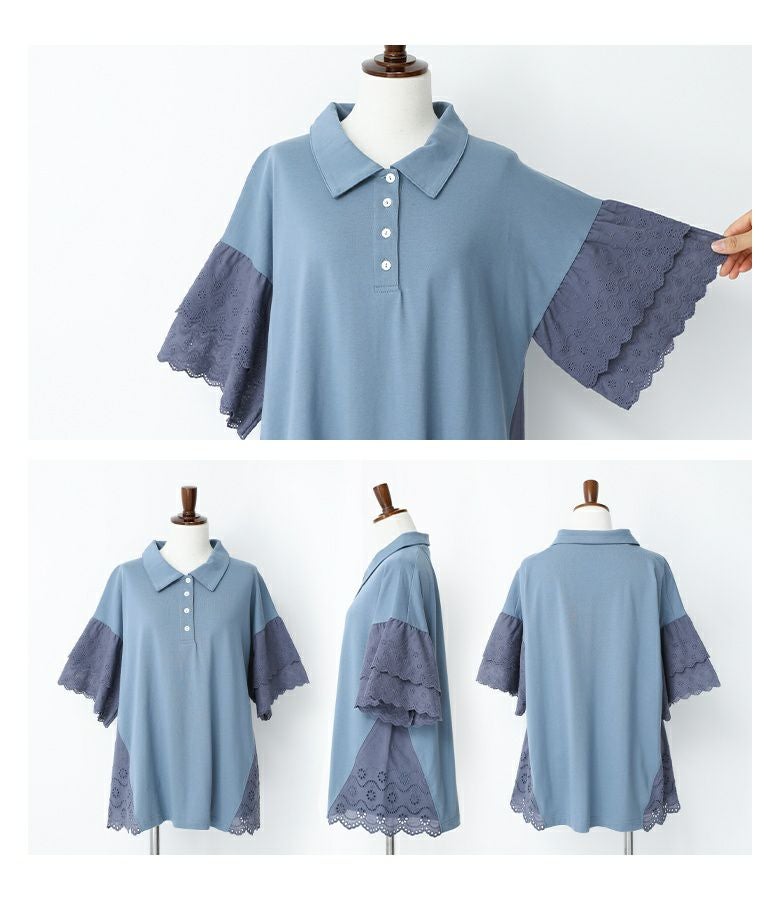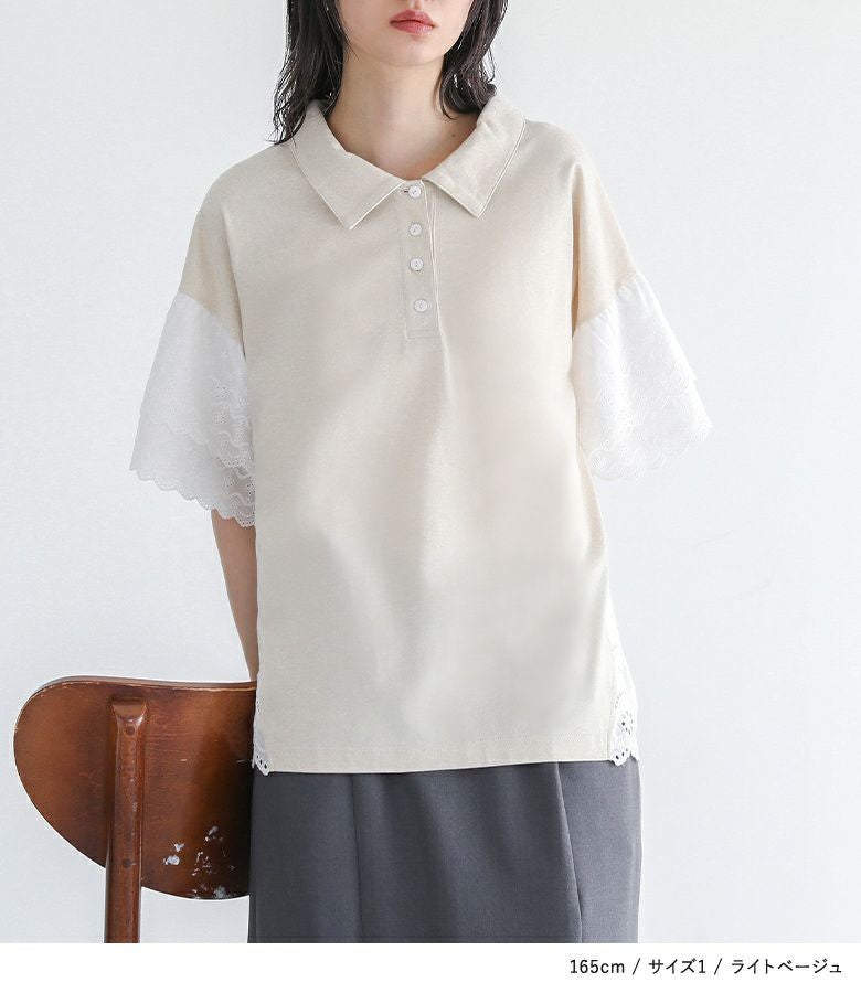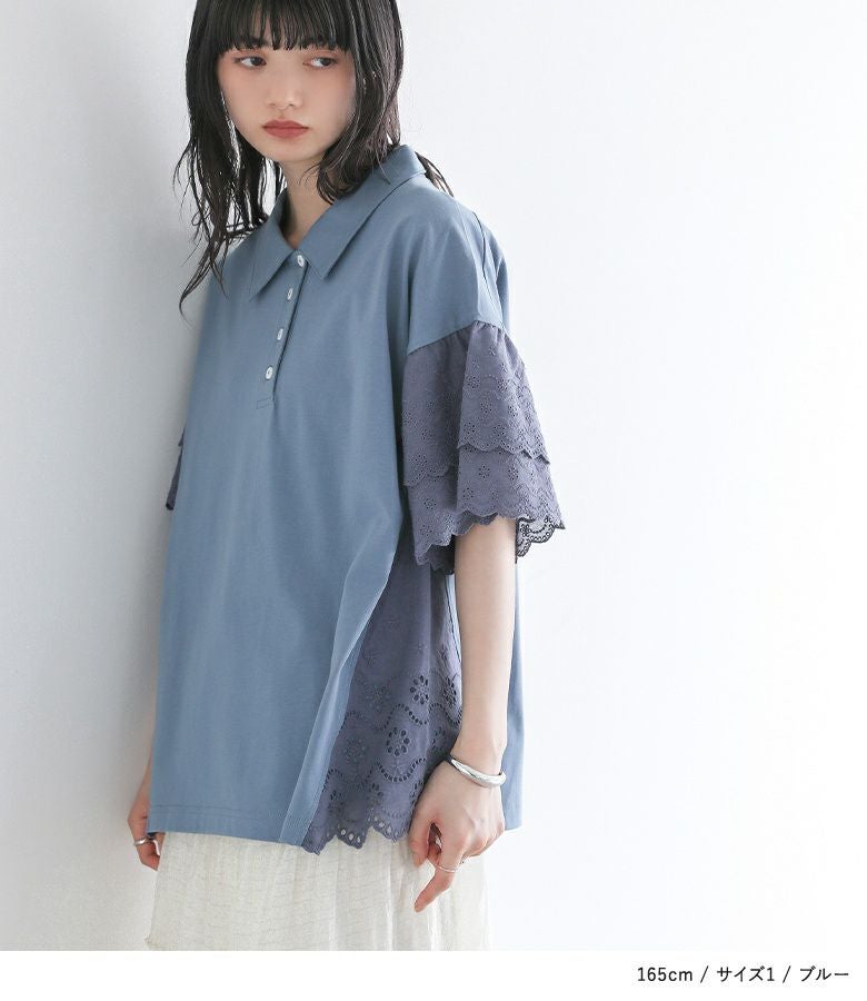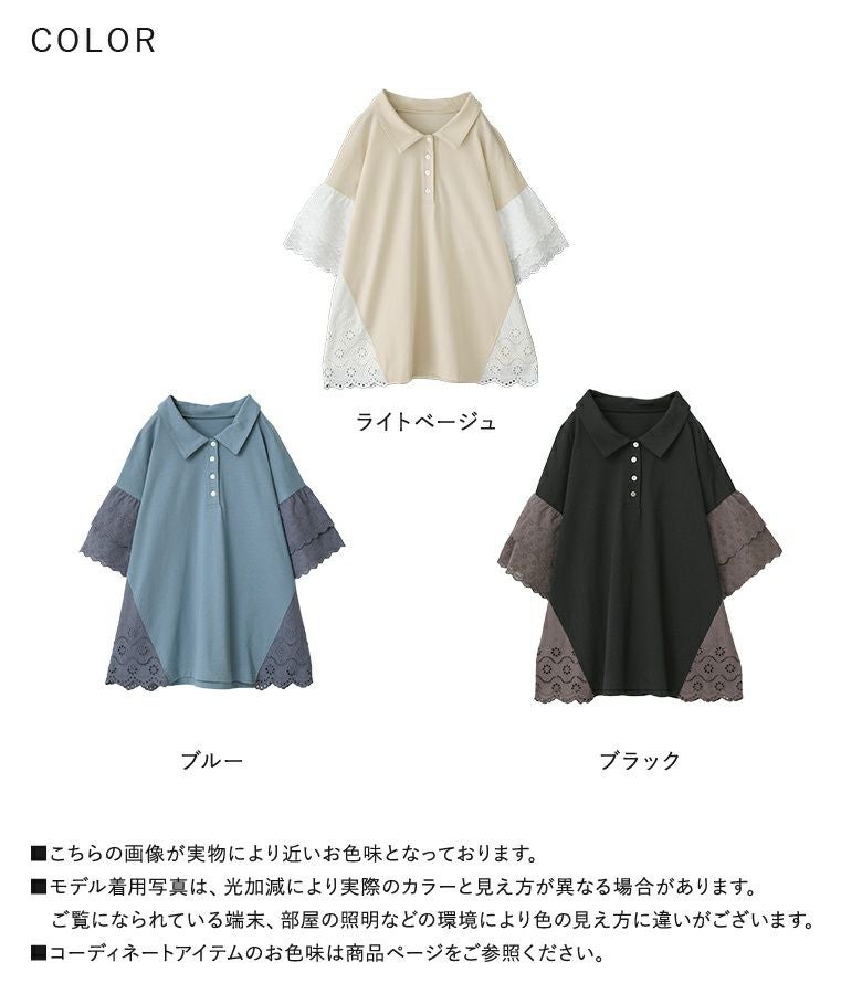 他の画像を見る 選べる2サイズ展開!端がスカラップ仕様のコットンレースが魅力のポロカットソー。 『somari imaginationコットンレース切り替えポロカットソー』※メール便可※【10】 ¥ 4,980 税込 (0)