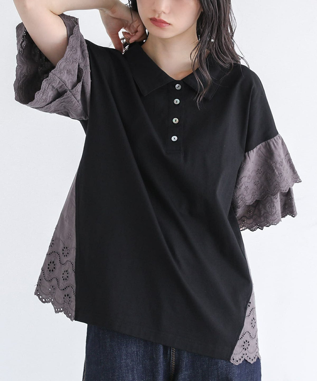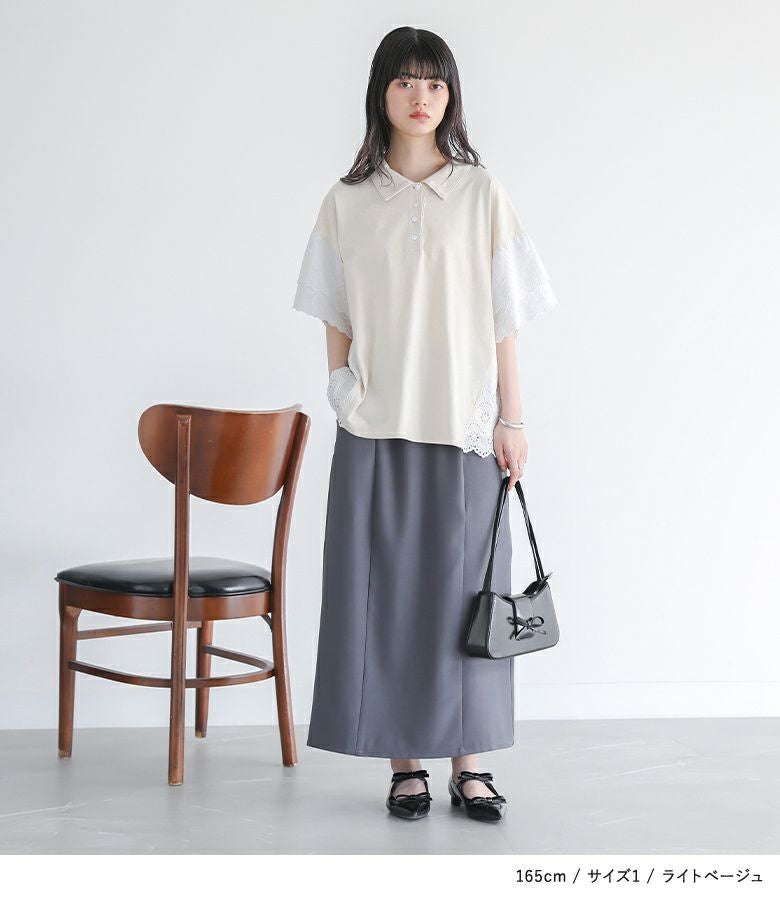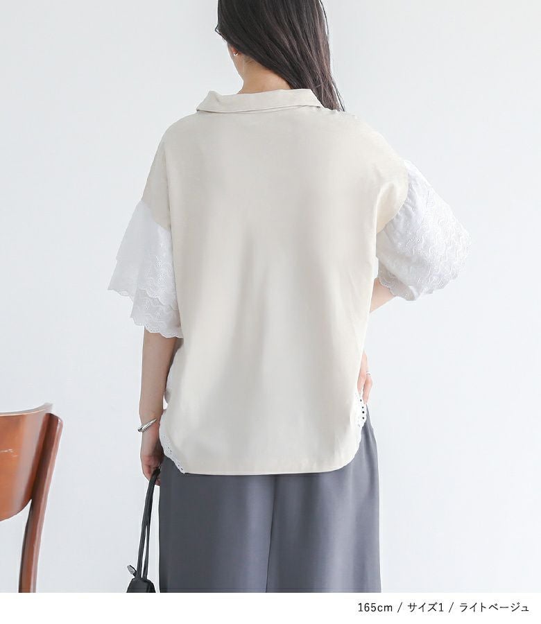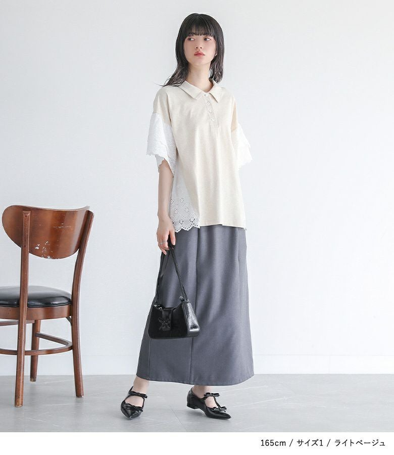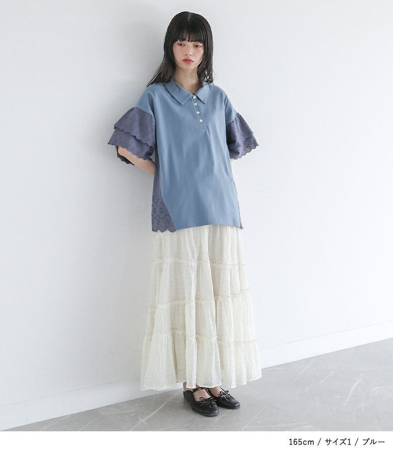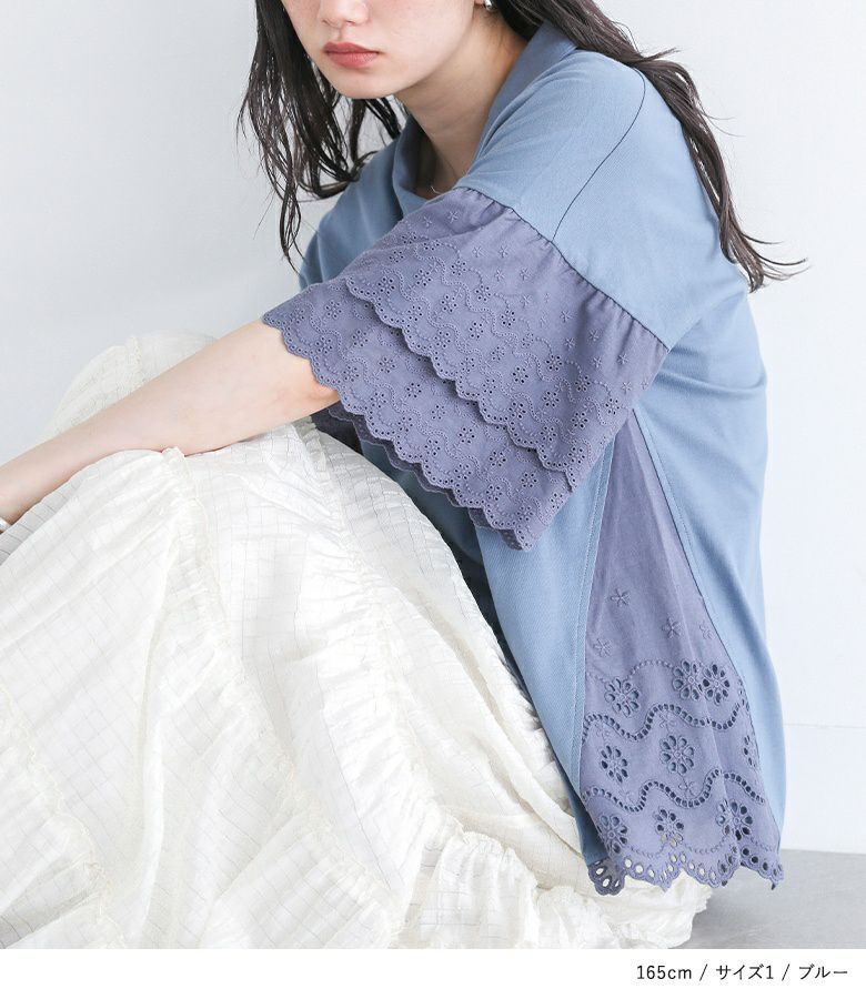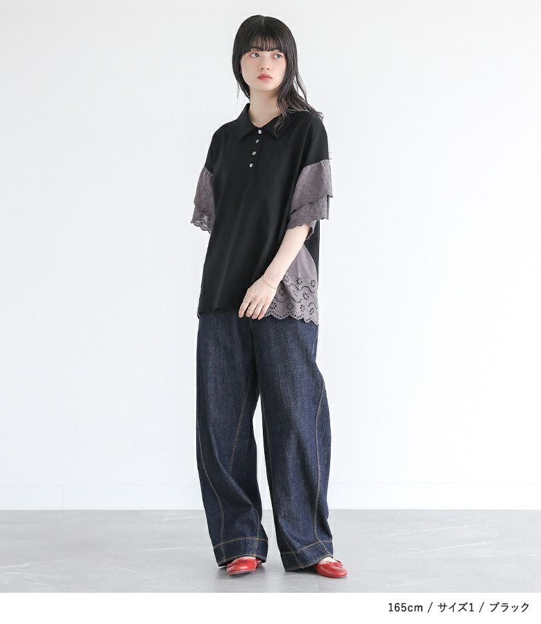 他の画像を見る 選べる2サイズ展開!端がスカラップ仕様のコットンレースが魅力のポロカットソー。 『somari imaginationコットンレース切り替えポロカットソー』※メール便可※【10】 ¥ 4,980 税込 (0)