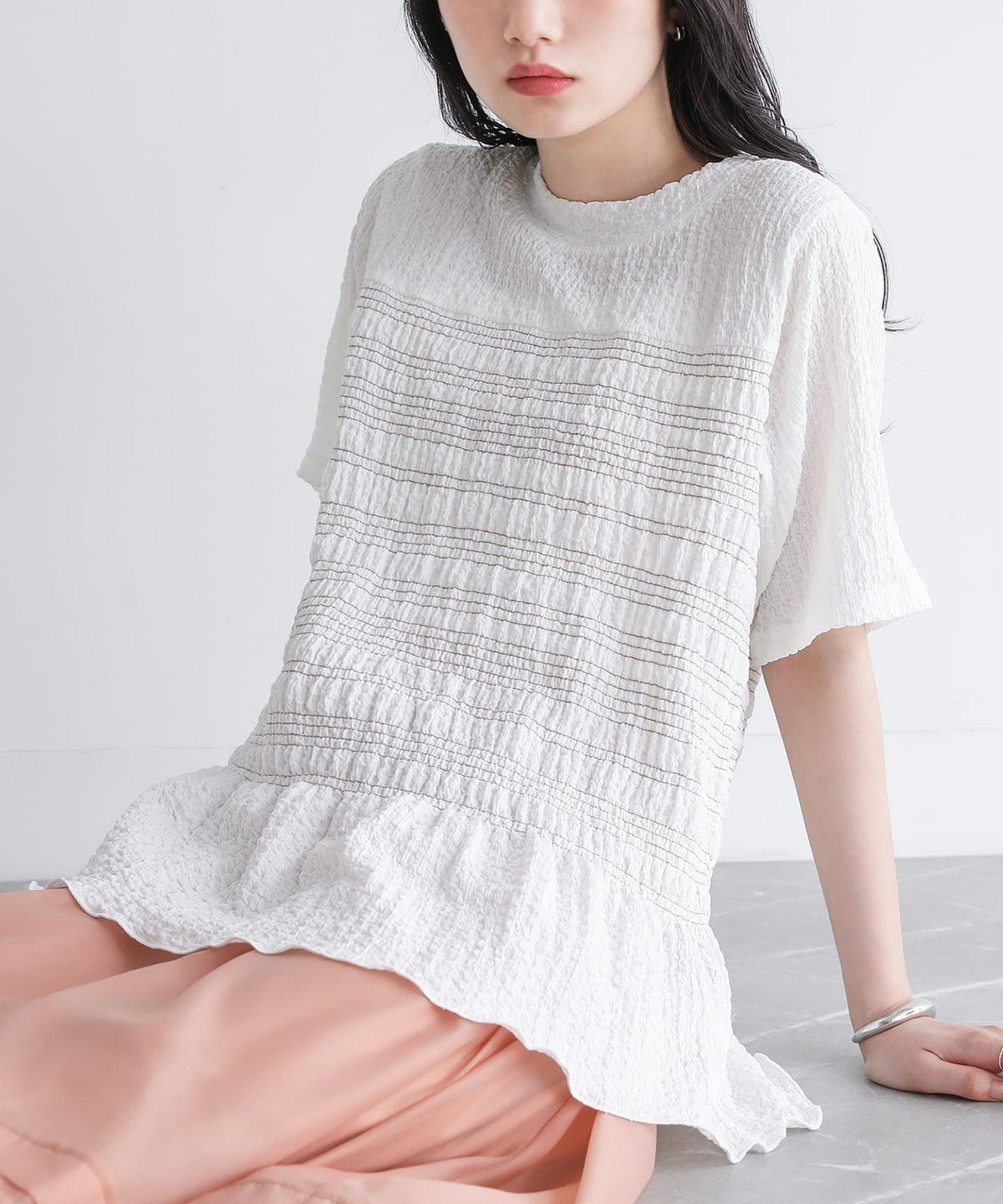 他の画像を見る 選べる2サイズ展開!身頃にランダムなシャーリングデザインを施したTシャツ。 『somari imaginationシャーリング半袖カットソー』※メール便可※【10】 ¥ 4,980 税込 (0)
