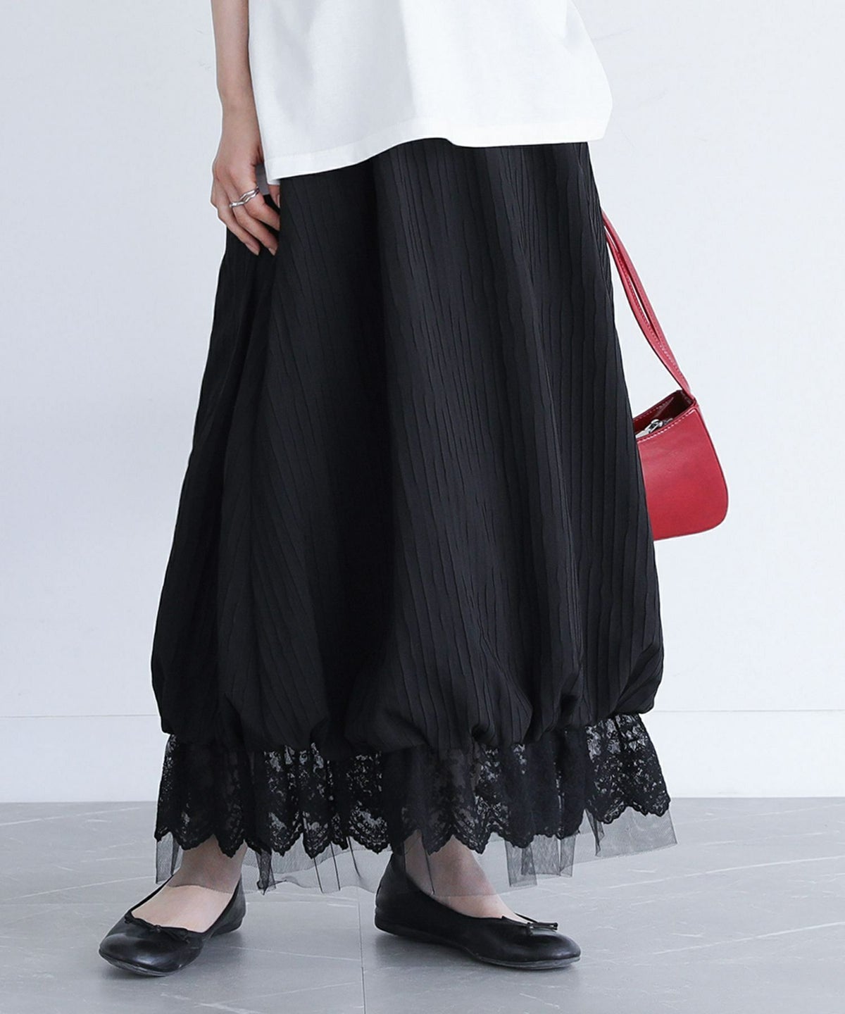 他の画像を見る 選べる2サイズ展開!裾にレースとチュールを施したバルーンスカート。 『somari imagination裾チュールレース付きバルーンスカート』【メール便不可】【30】 ¥ 6,980 税込 (0)