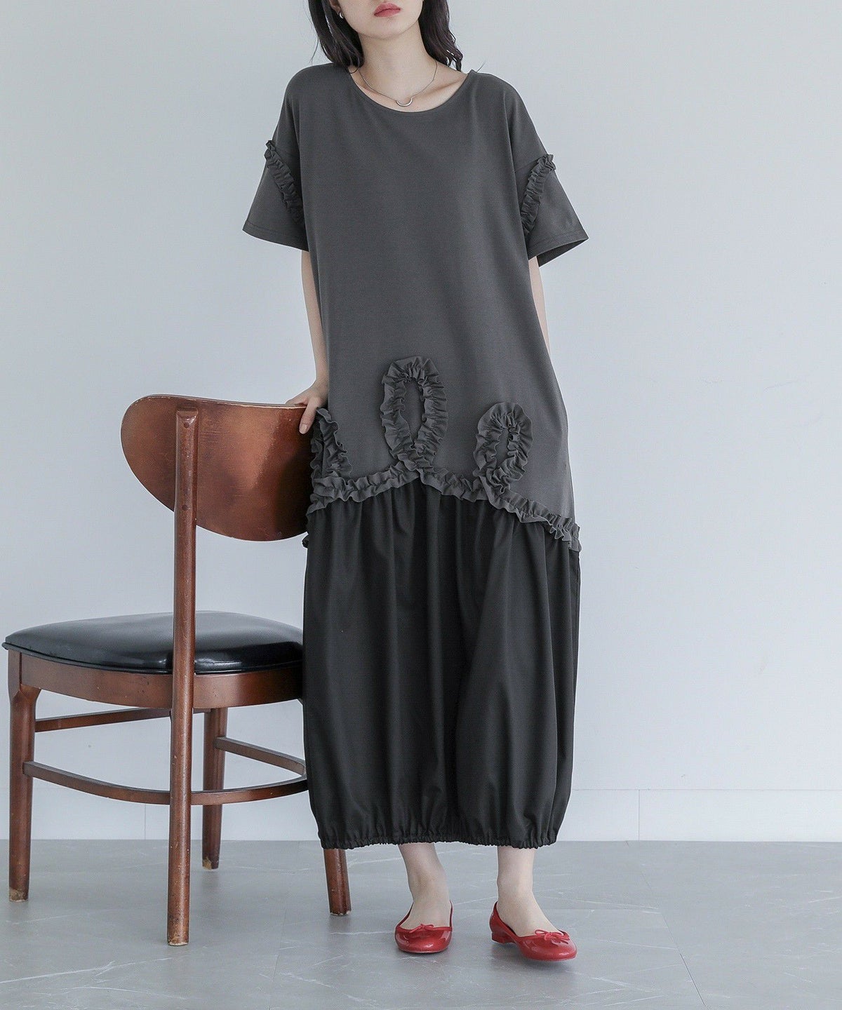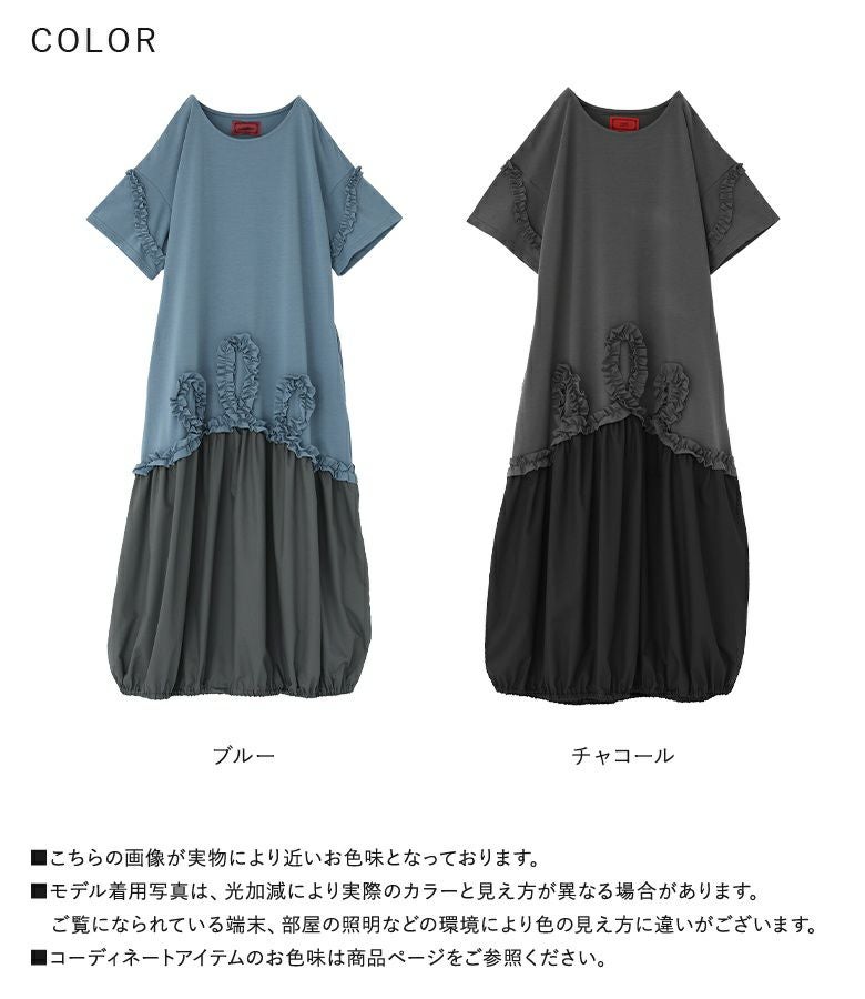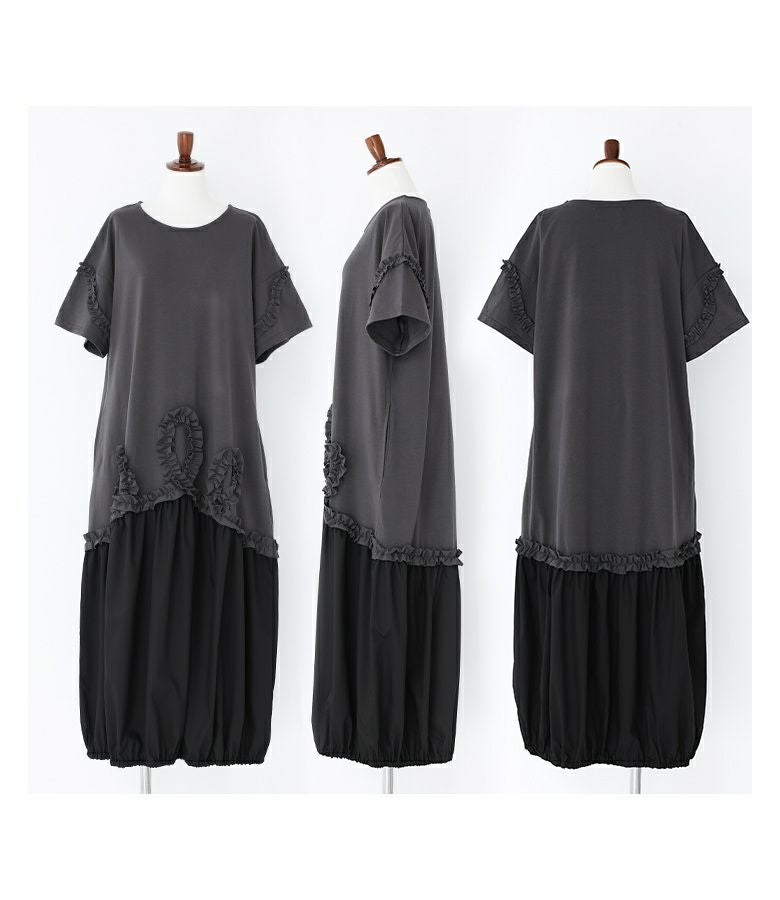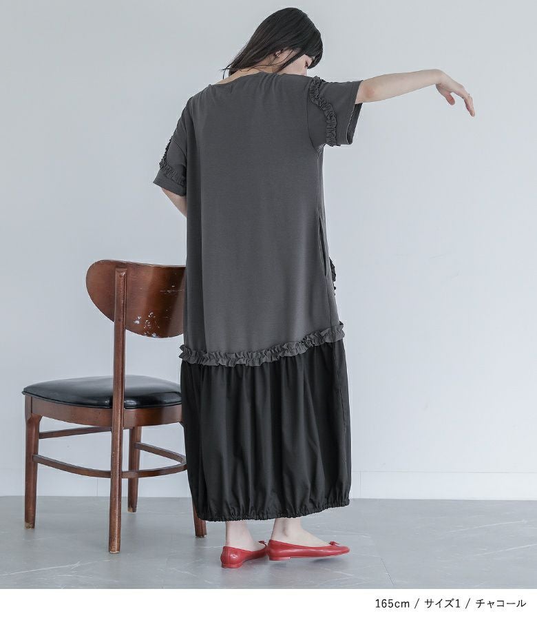 他の画像を見る 選べる2サイズ展開!カットソーと布帛を切り替えた異素材ワンピース。 『somari imaginationフリル異素材カットワンピース』【メール便不可】【30】 ¥ 6,980 税込 (0)