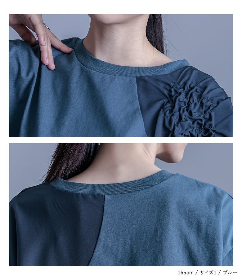 他の画像を見る 選べる2サイズ展開!異素材×配色がモードなアクセントをプラスするカットソー。 『kOhAKU異素材シャーリング切替カットソー』※メール便可※【10】 ¥ 4,980 税込 4.00 (1)