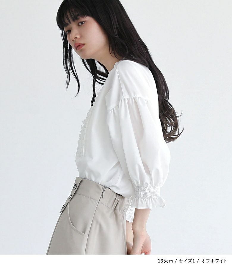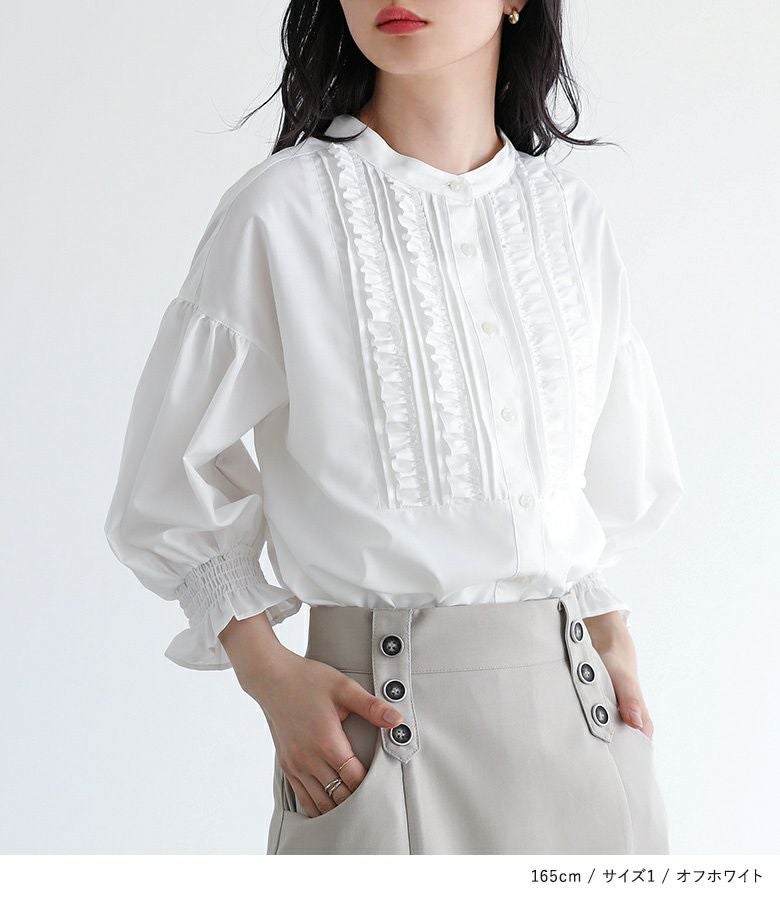 他の画像を見る 選べる2サイズ展開!胸元のピンタックとフリルで甘さを入れたブラウス。 『somari imagination7分袖フリルピンタックブラウス』※メール便可※【10】 ¥ 5,980 税込 5.00 (1)