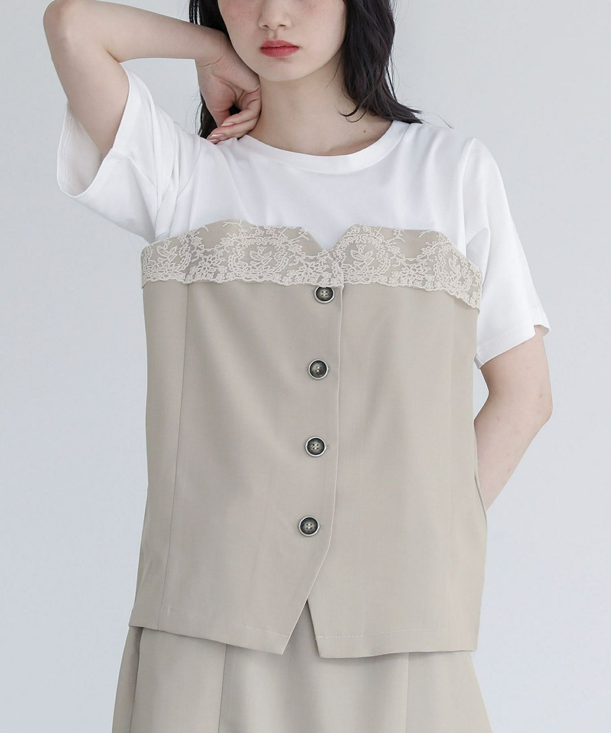 他の画像を見る 選べる2サイズ展開!ビスチェとカットソーがドッキングされたTシャツ 『somari imaginationビスチェドッキングカットソー』※メール便可※【10】 ¥ 4,980 税込 3.50 (2)