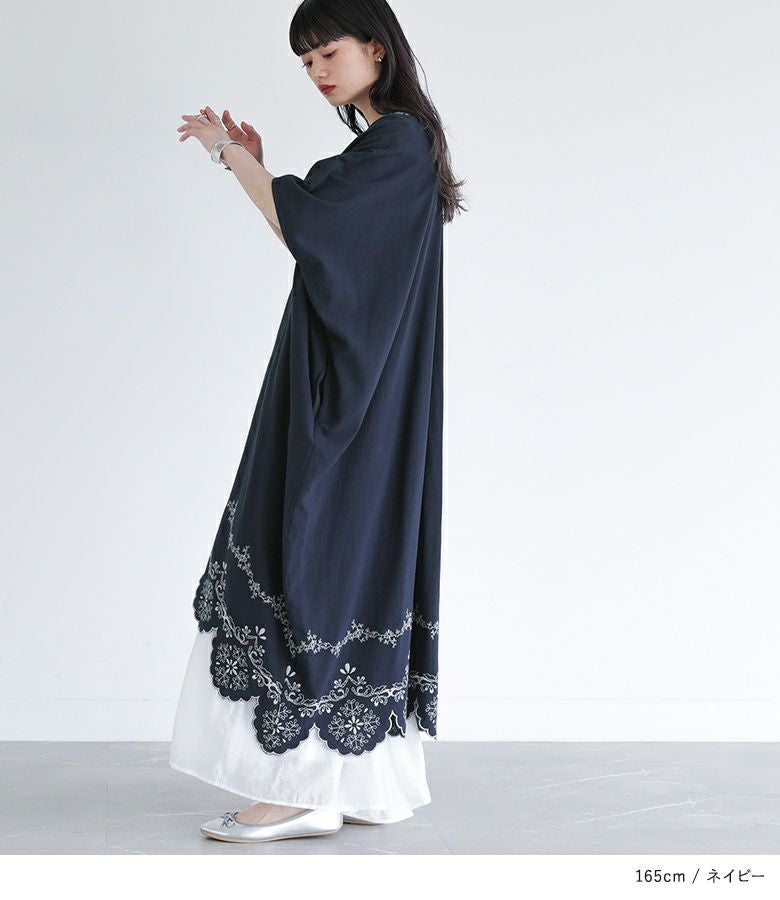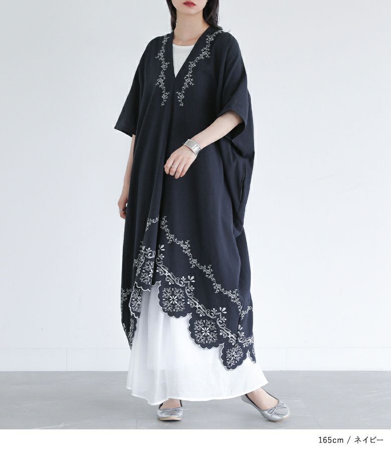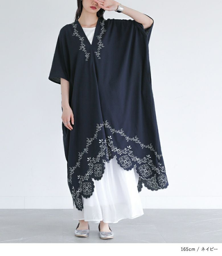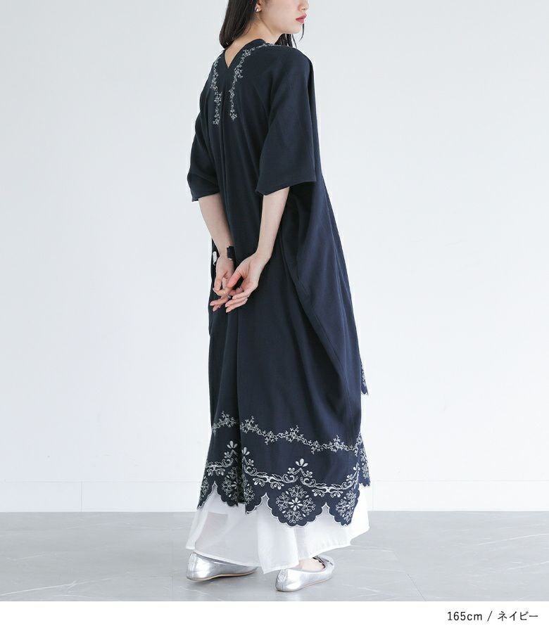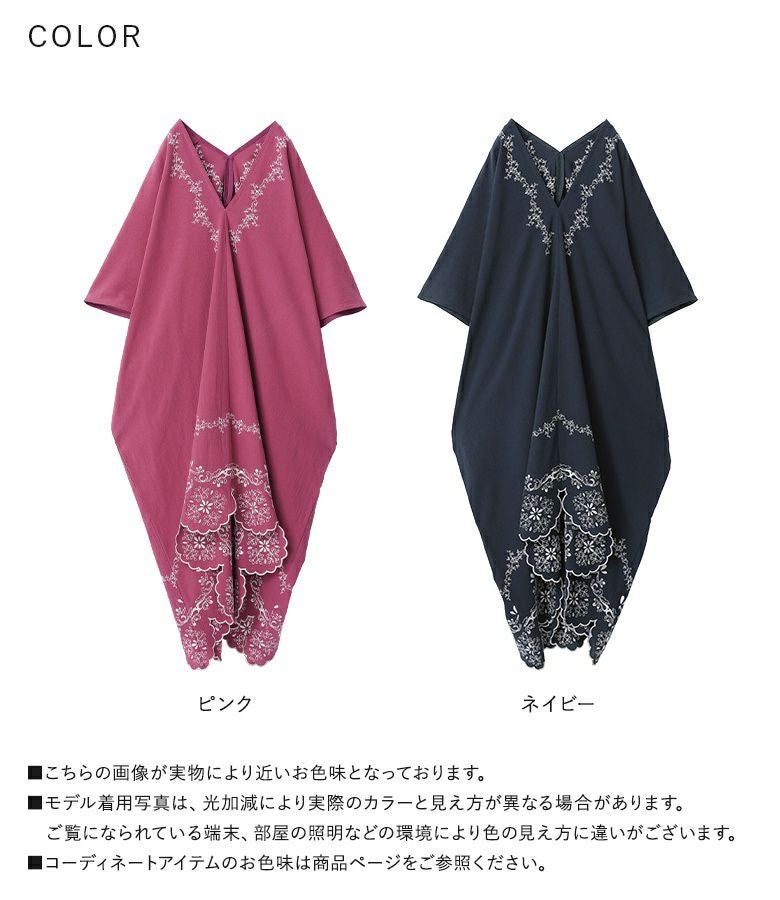他の画像を見る レース柄を刺繍で裾に施したカフタンワンピース。 【送料無料】『somari imaginationカットワーク刺繍カフタンワンピース』【メール便不可】【20】 ¥ 8,980 税込 (0)