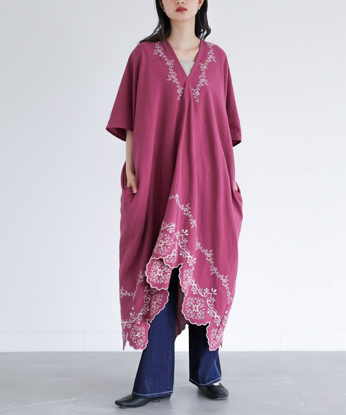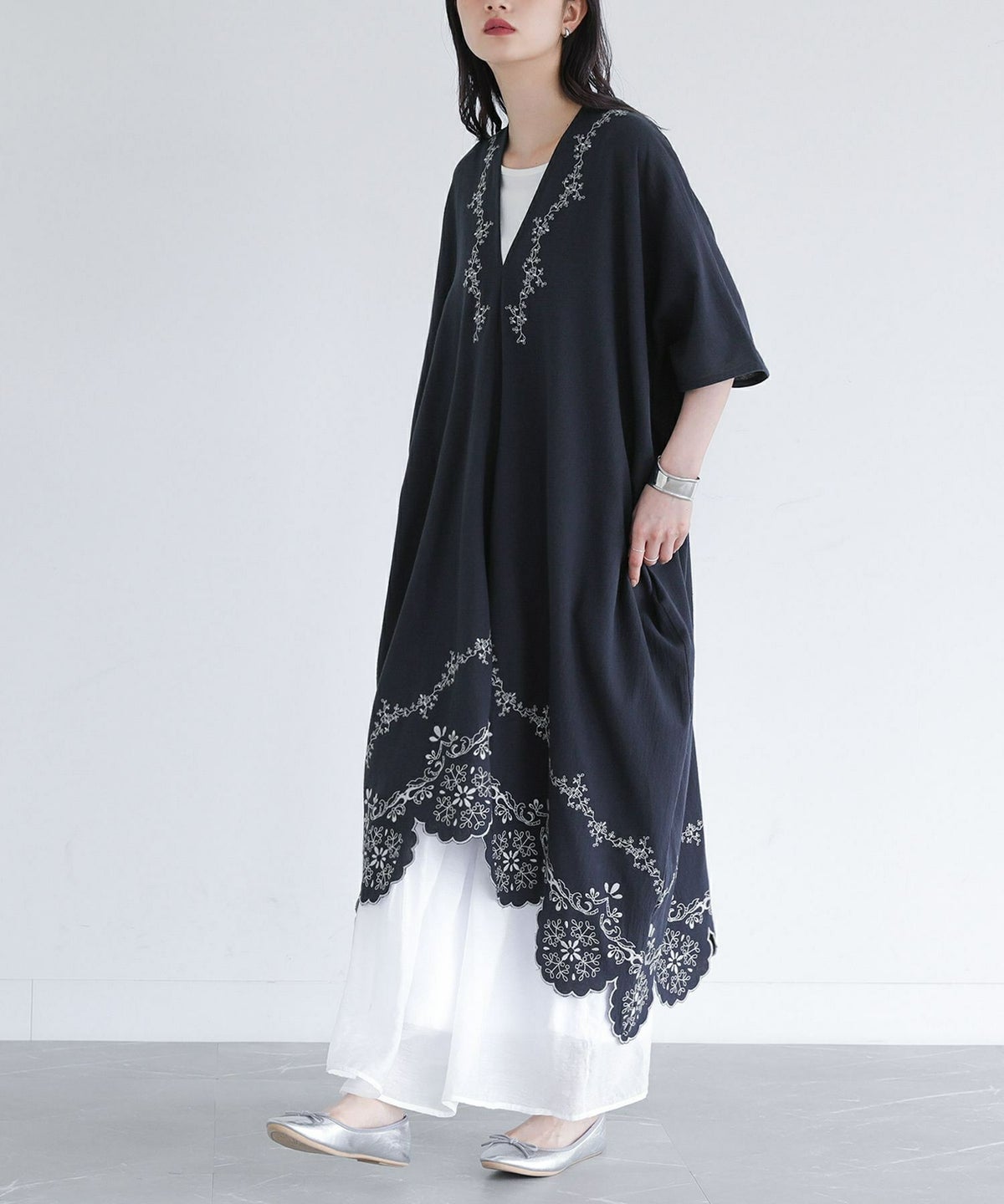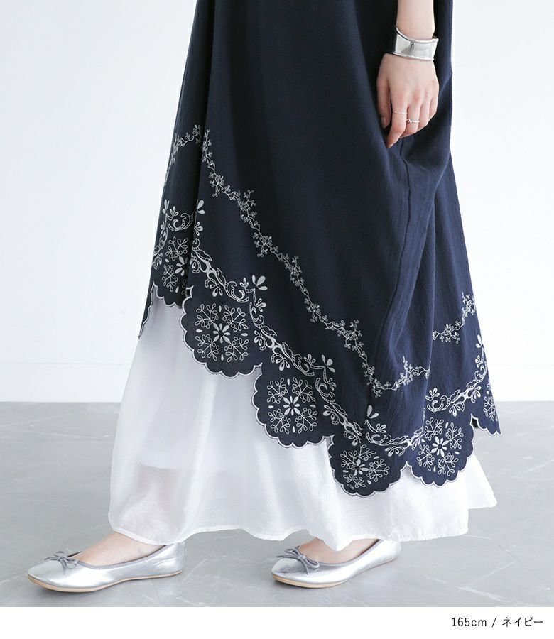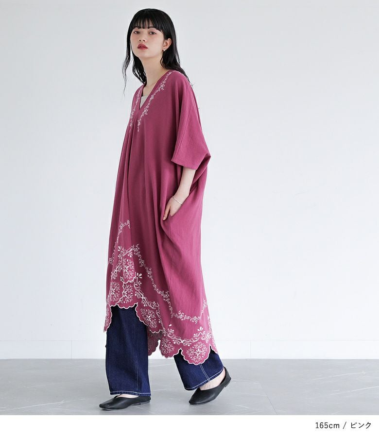 他の画像を見る レース柄を刺繍で裾に施したカフタンワンピース。 【送料無料】『somari imaginationカットワーク刺繍カフタンワンピース』【メール便不可】【20】 ¥ 8,980 税込 (0)
