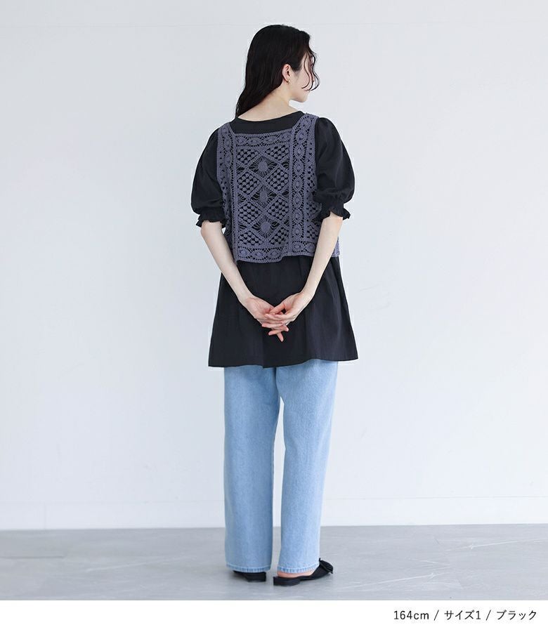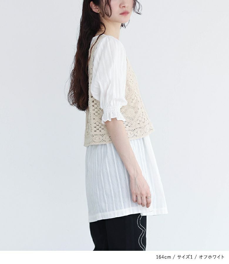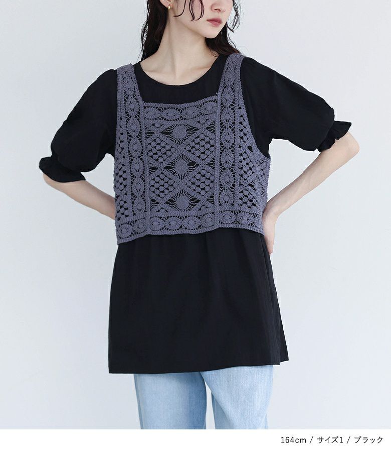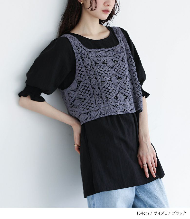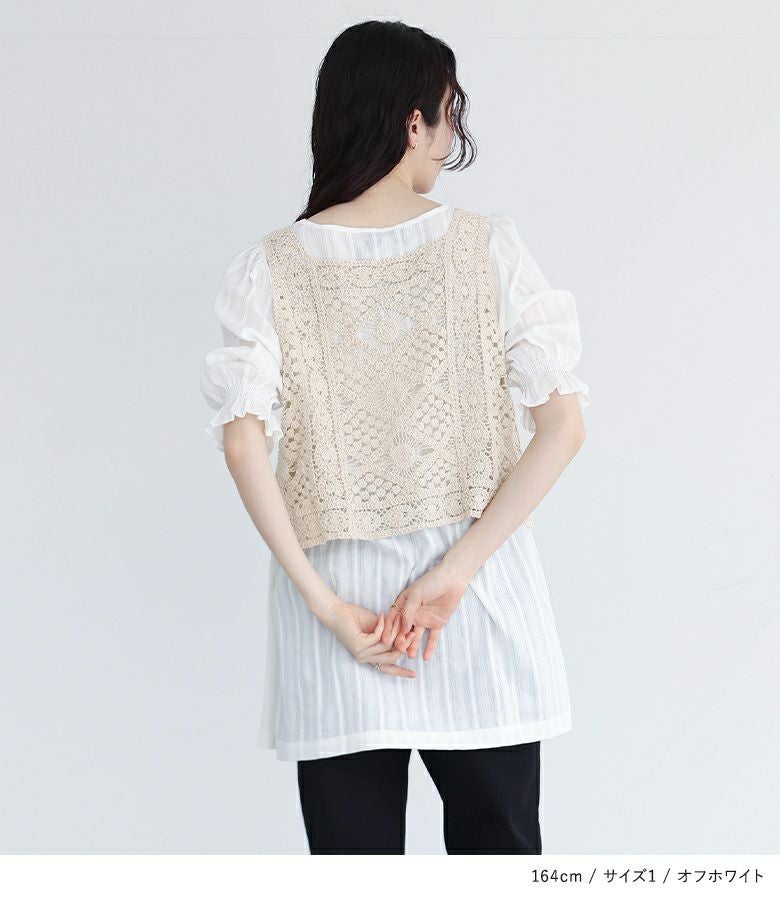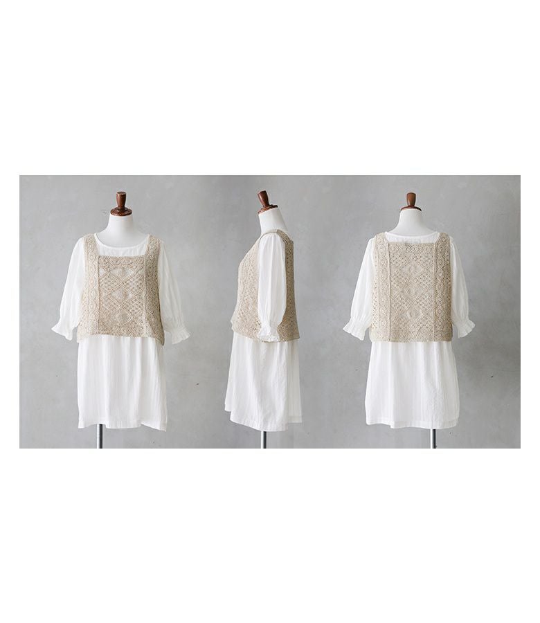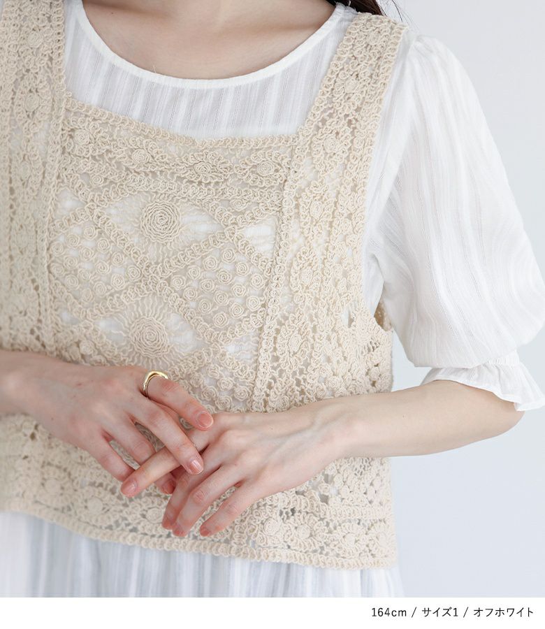 他の画像を見る 選べるM~3Lサイズ展開!風合い放つレースベスト×ブラウスセット♪ 『somari imaginationクロシェレースベスト×ブラウスセット』【メール便不可】【20】 ¥ 6,980 税込 4.73 (15)