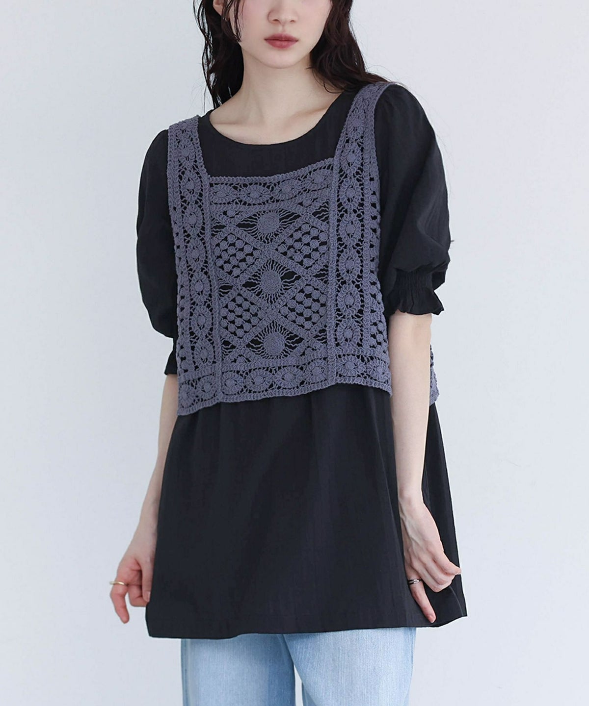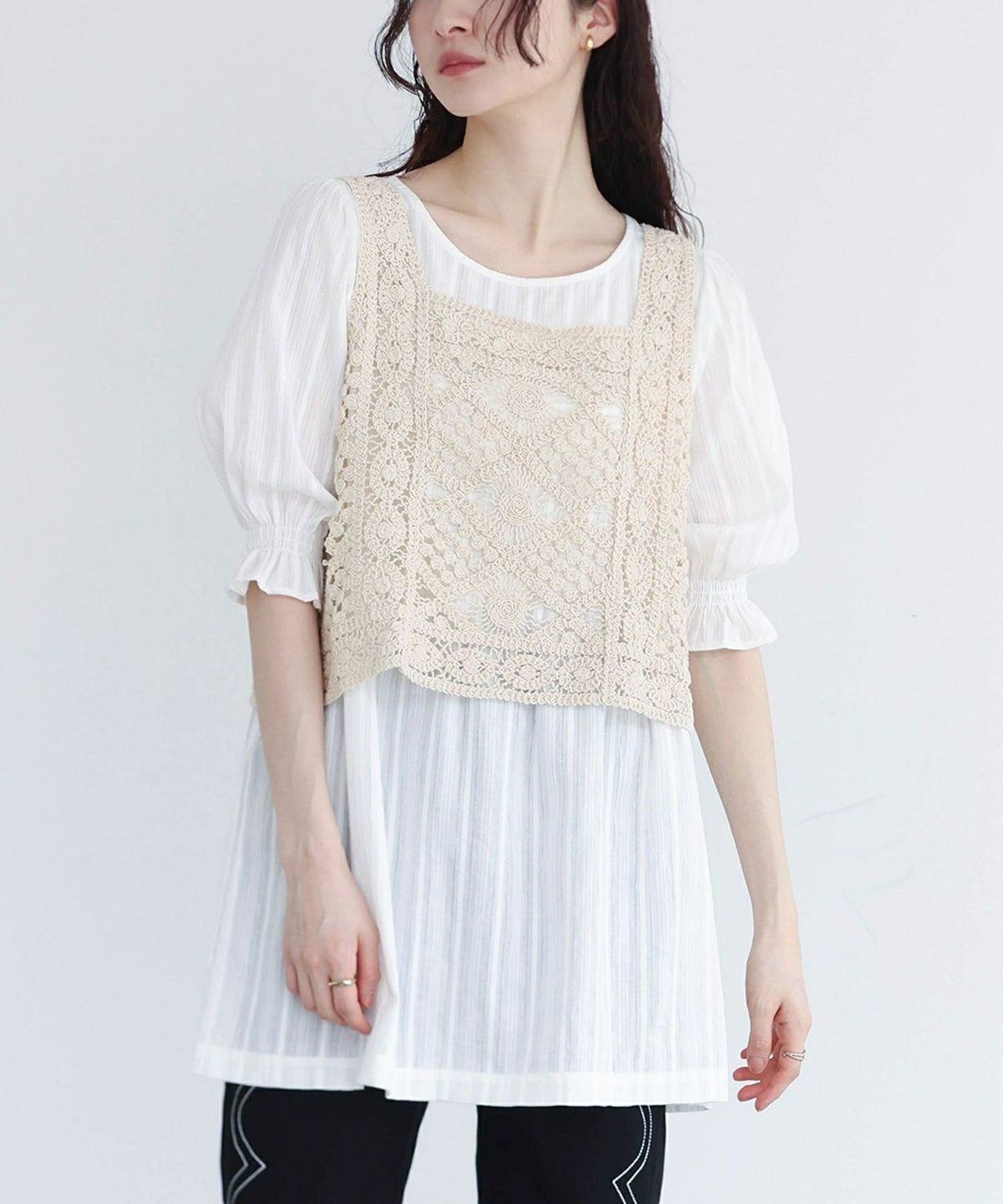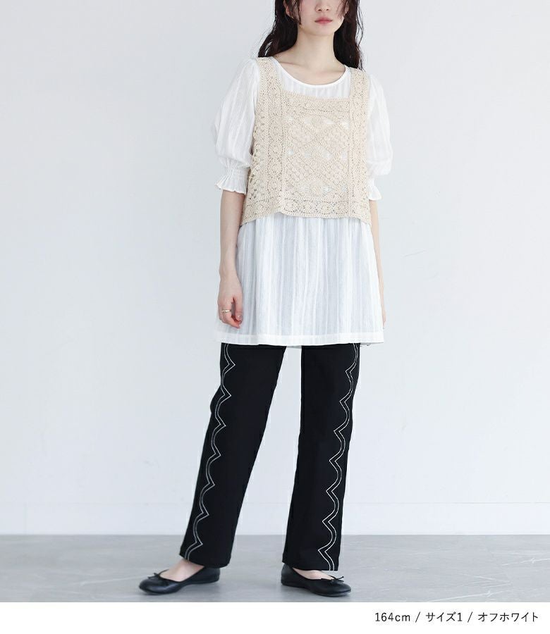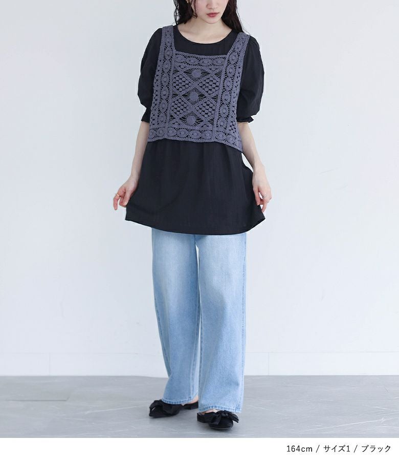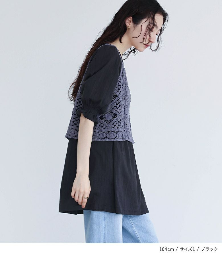 他の画像を見る 選べるM~3Lサイズ展開!風合い放つレースベスト×ブラウスセット♪ 『somari imaginationクロシェレースベスト×ブラウスセット』【メール便不可】【20】 ¥ 6,980 税込 4.73 (15)