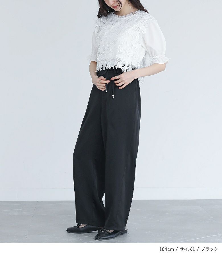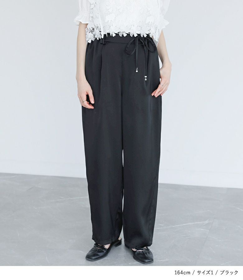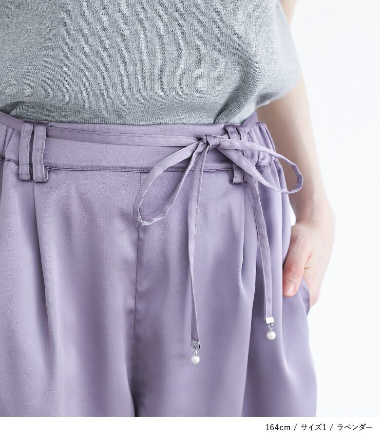 他の画像を見る 選べる2サイズ展開!サテン生地を使用したゆったりとしたカーブパンツ。 『somari imaginationフェイクパールベルト付きサテンカーブパンツ』※メール便可※【10】 ¥ 5,980 税込 (0)