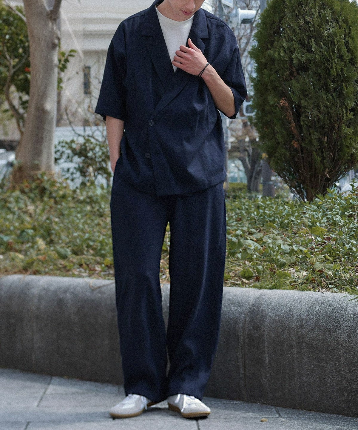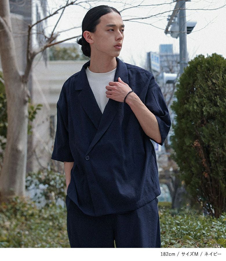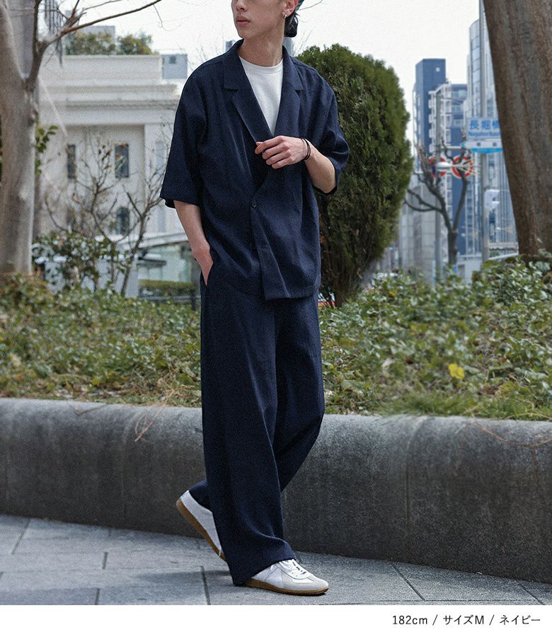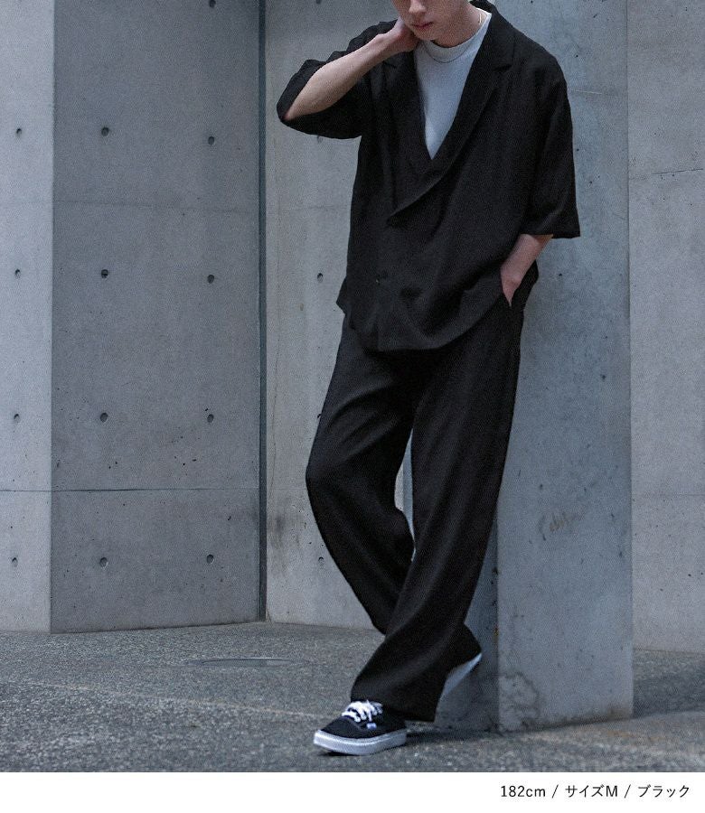 他の画像を見る 涼しげな印象のダブルブレストシャツとストレートワイドパンツのセットアップ。 【送料無料】『MDRシャツ&ストレートパンツセットアップ』【メール便不可】【30】 ¥ 8,980 税込 (0)