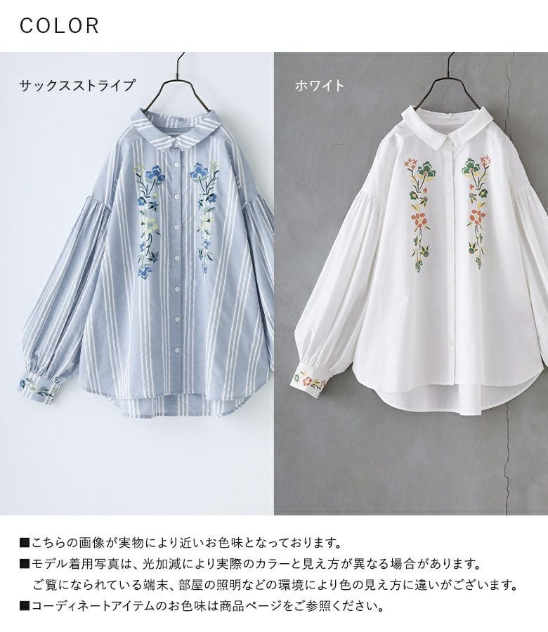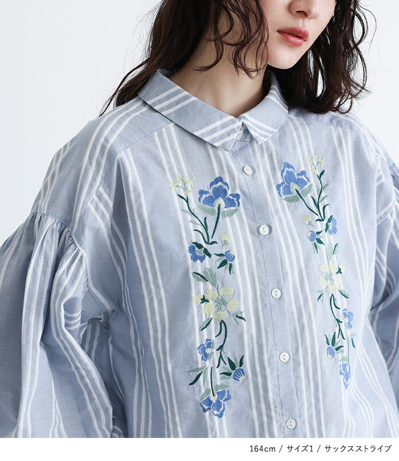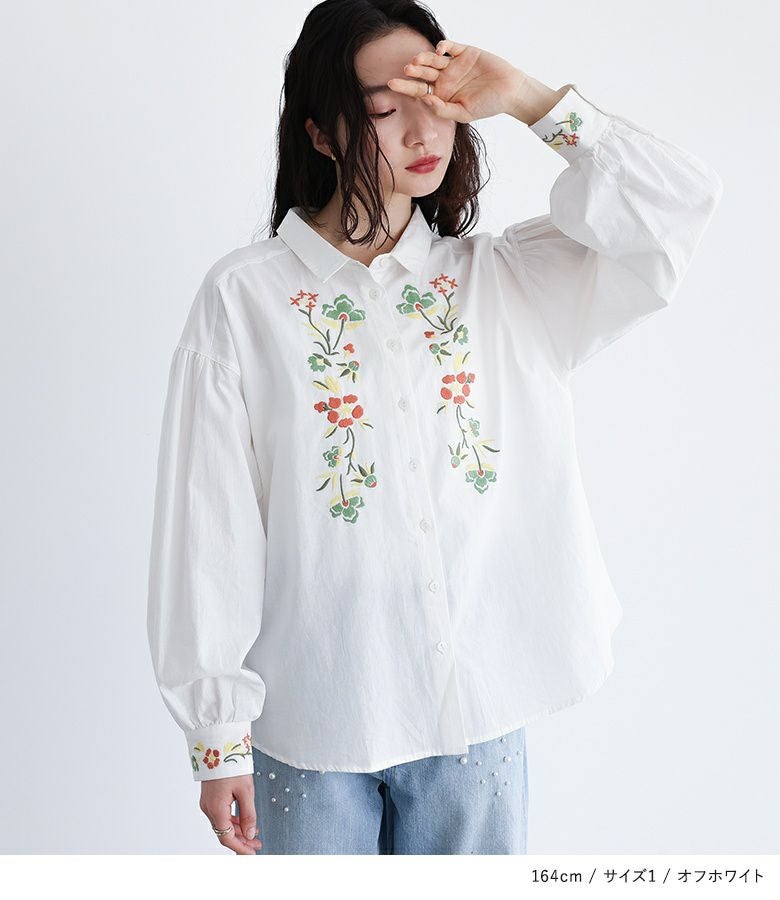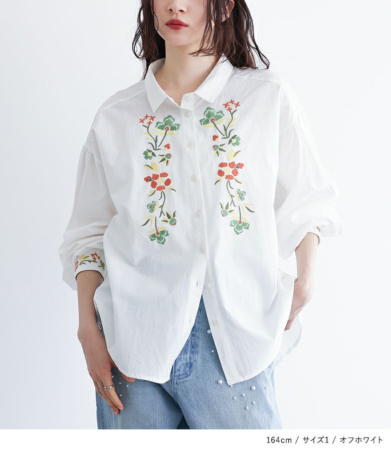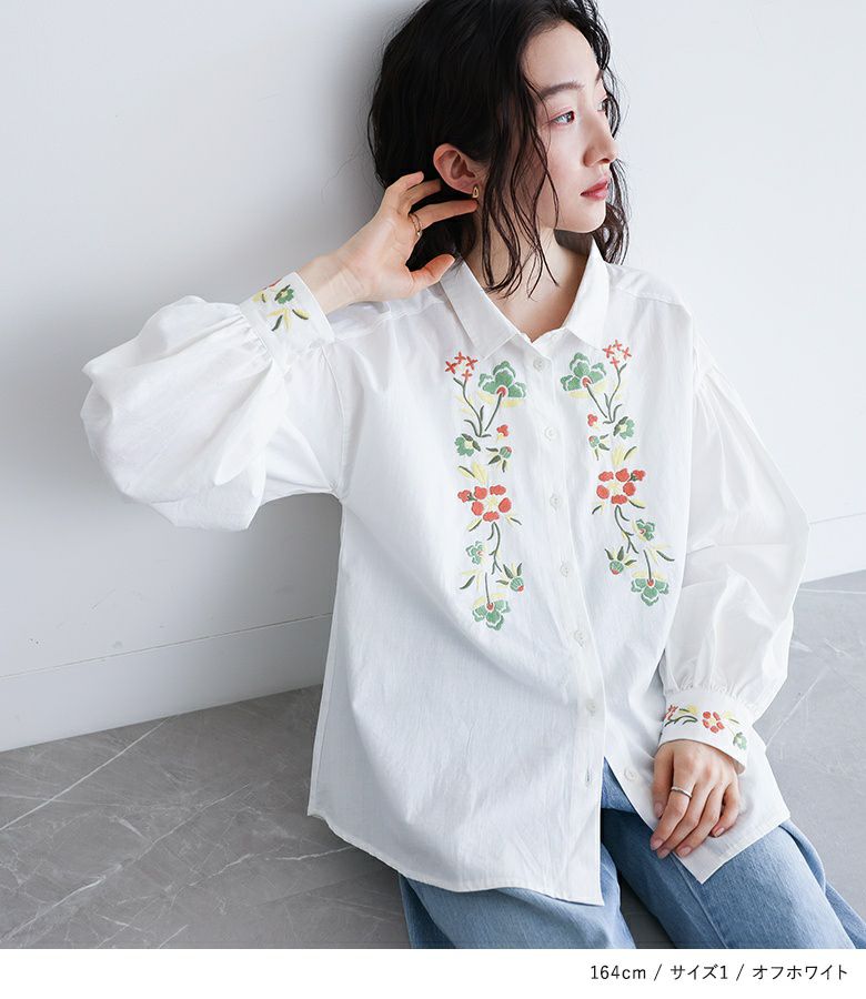 他の画像を見る レトロ可愛い雰囲気を纏う、花柄刺繍シャツブラウス♪ 『somari imagination花柄刺繍ボリューム袖シャツブラウス』【メール便不可】【20】 ¥ 6,980 税込 4.71 (7)