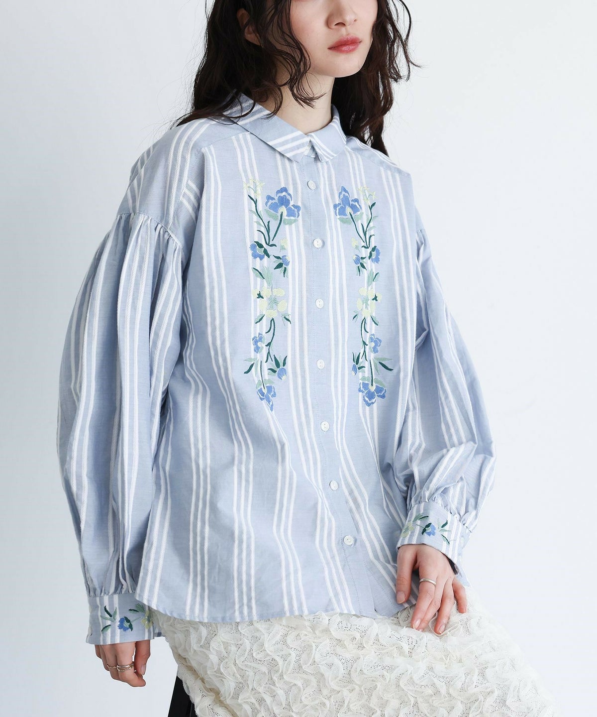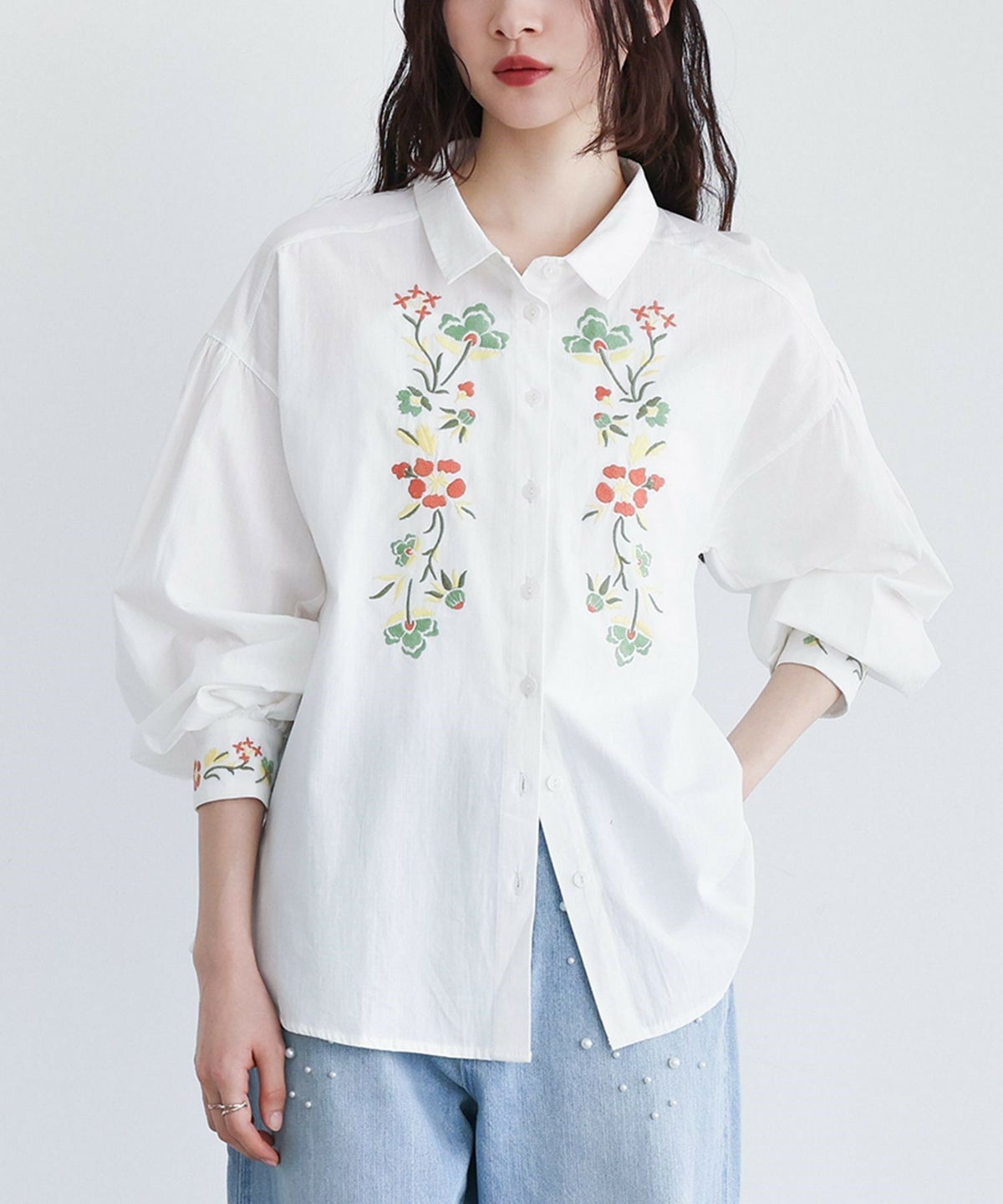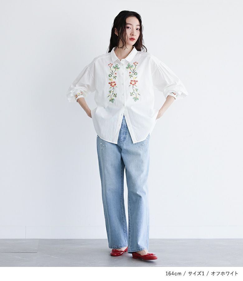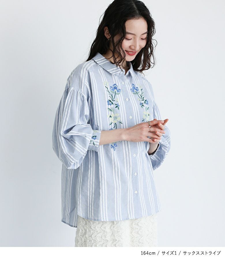 他の画像を見る レトロ可愛い雰囲気を纏う、花柄刺繍シャツブラウス♪ 『somari imagination花柄刺繍ボリューム袖シャツブラウス』【メール便不可】【20】 ¥ 6,980 税込 4.71 (7)