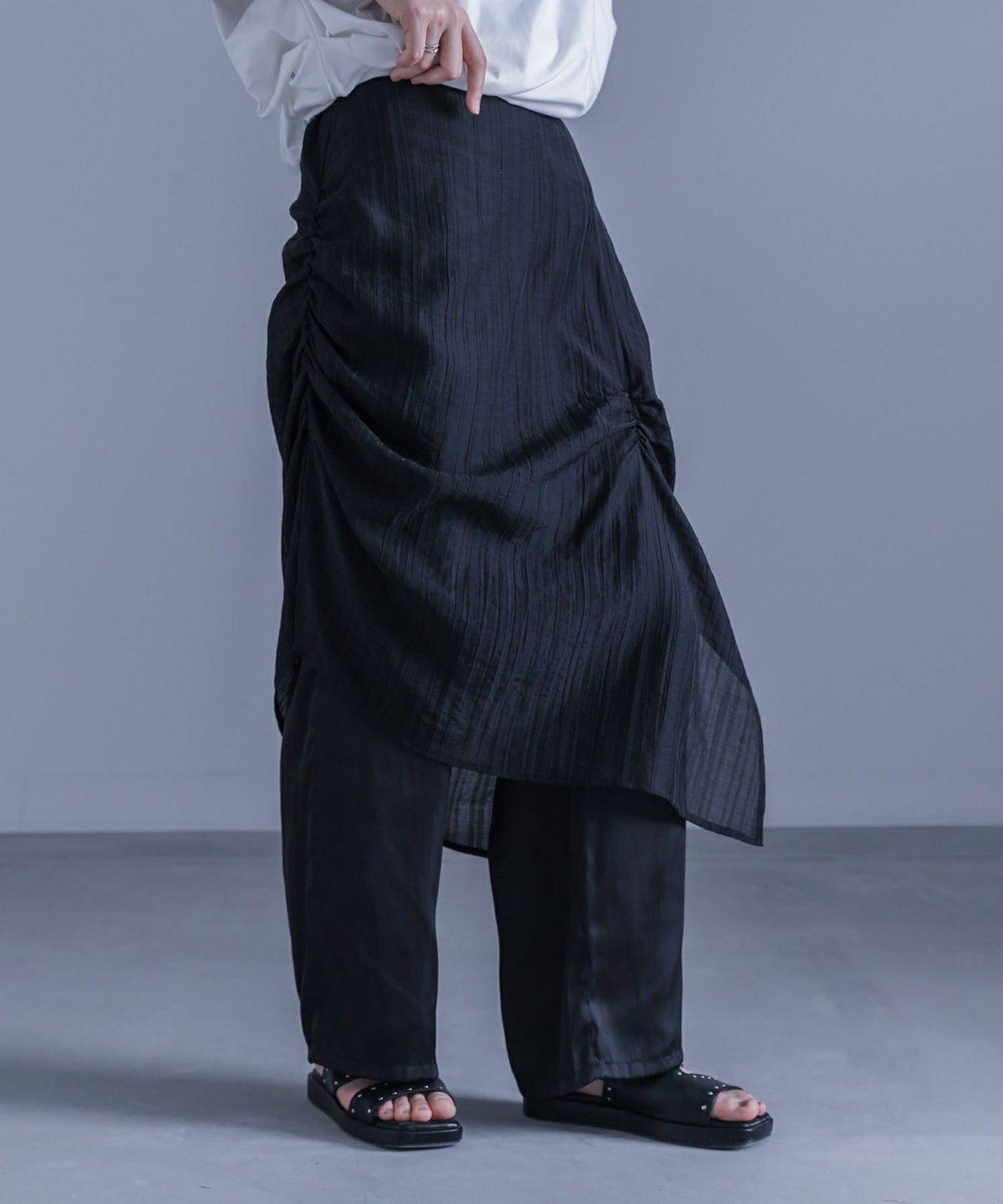 他の画像を見る 選べる2サイズ展開!シアーストライプスカートとサテンパンツがセットになった洗練デザインアイテム。 『kOhAKUシアーギャザースカート付きサテンパンツ』※メール便可※【10】 ¥ 6,980 税込 4.00 (2)