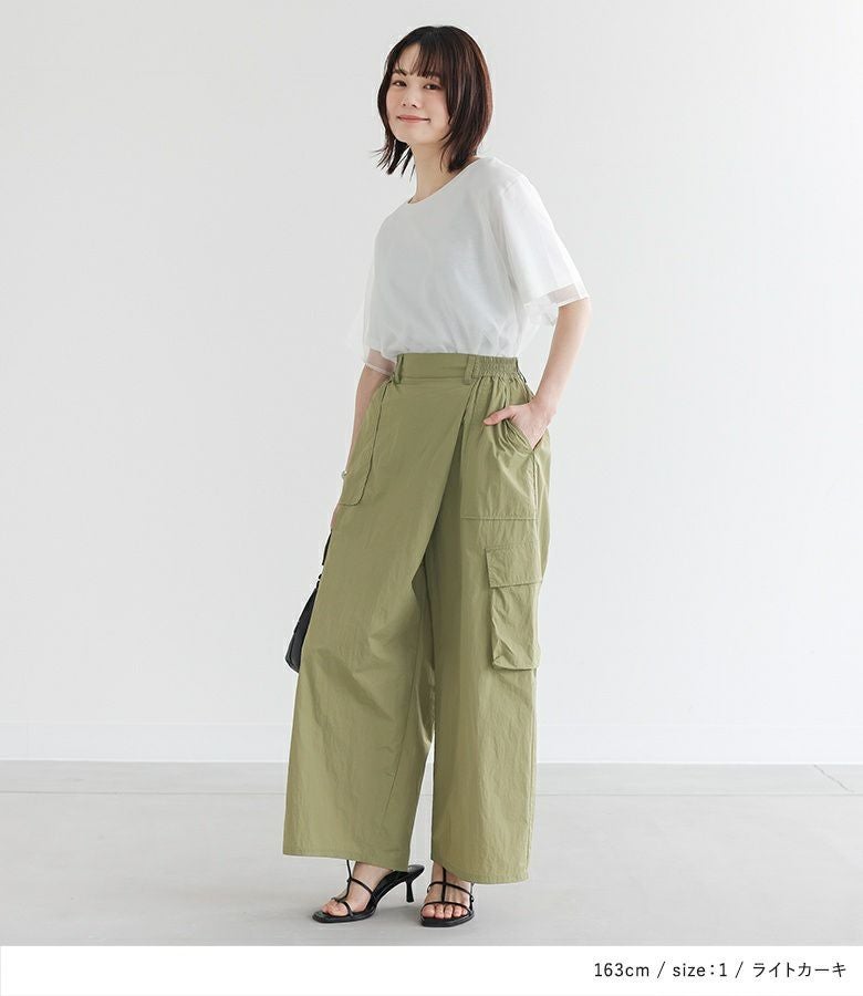 他の画像を見る 【50%OFF】選べるM~3Lサイズ展開!カシュクールデザインがアクセントのカーゴワイドパンツ。 『n'OrLABELカシュクールワイドカーゴパンツ』※返品交換不可※※メール便可※【10】 定価 ¥ 4,980 のところ ¥ 2,490 税込 3.25 (4)