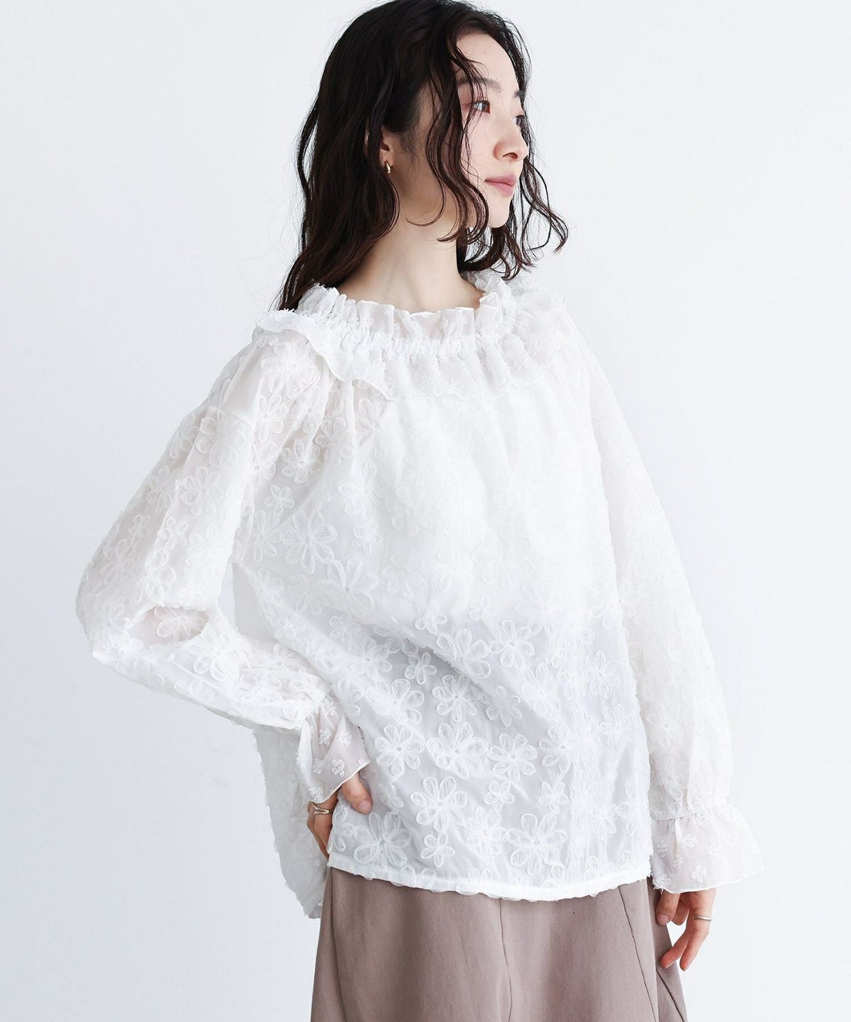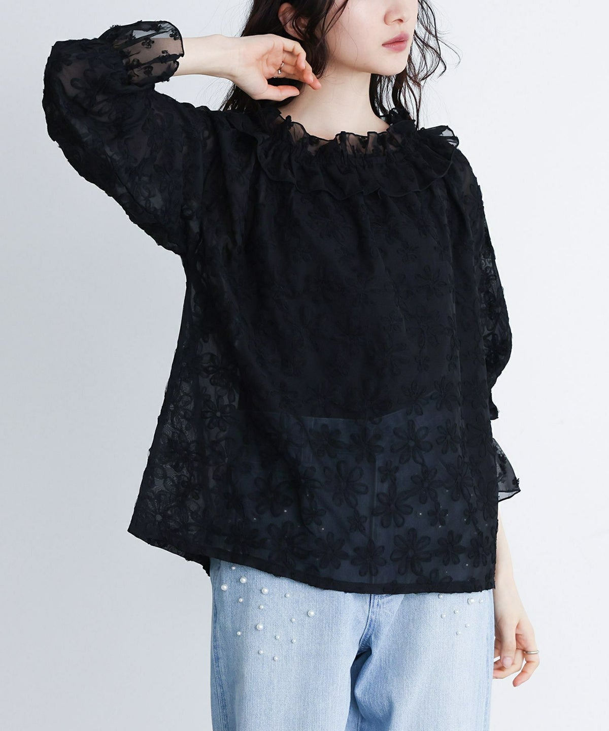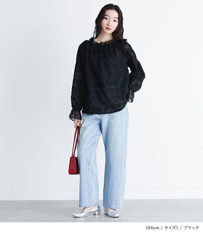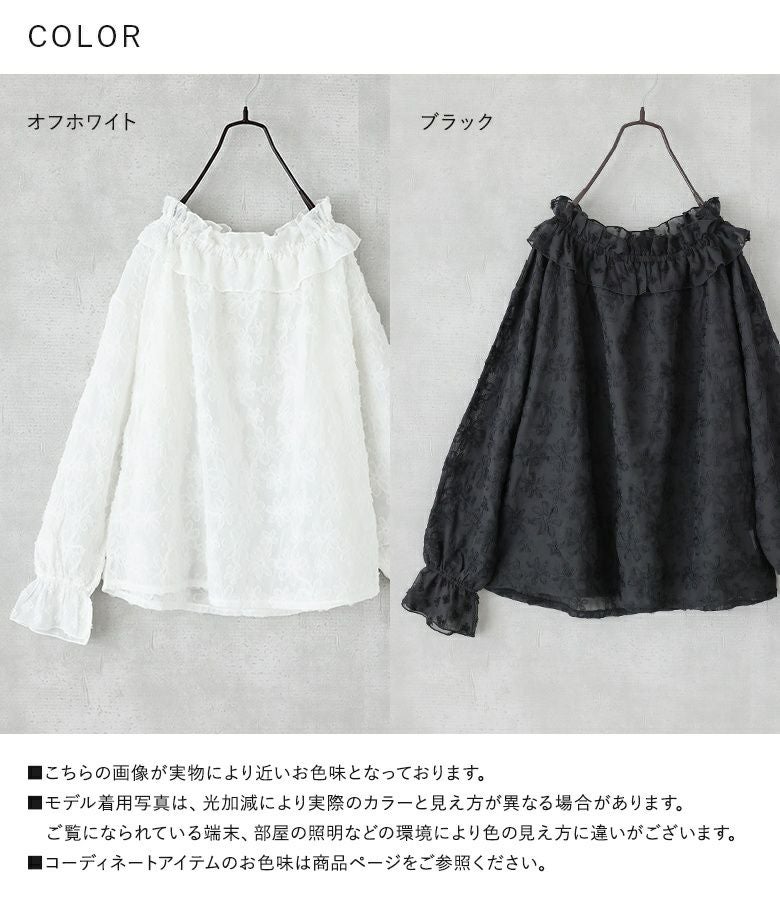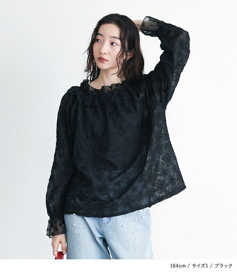 他の画像を見る 選べる2サイズ展開!フラワーモチーフのチュール刺繍がポイントのシアーブラウス。 『somari imaginationチュールテープフラワー刺繍シアーブラウス』※メール便可※【10】 ¥ 5,980 税込 (0)