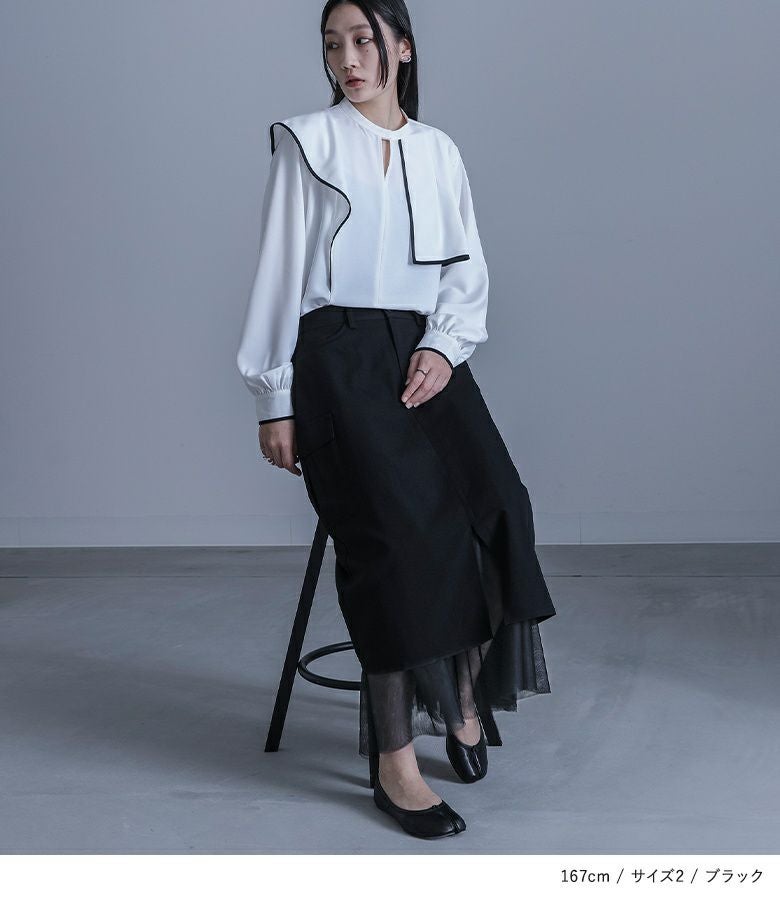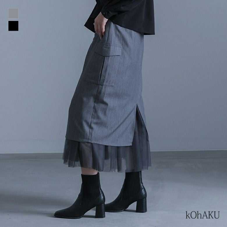 他の画像を見る 選べる2サイズ展開!裾とスリットからチュールが覗く、遊び心のあるナロースカート。 『kOhAKUチュール切替ナロースカート』※メール便可※【10】 ¥ 6,980 税込 4.00 (1)