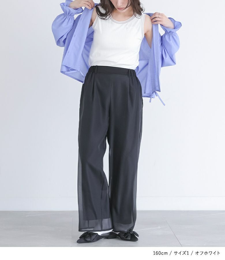 他の画像を見る 【30%OFF】選べる2サイズ展開!オーガンジー素材のレイヤードパンツ。 『somari imaginationオーガンジーレイヤードストレートパンツ』※返品交換不可※【メール便不可】【20】 販売期間 2026/03/05 0:00 〜 2026/03/10 23:59 定価 ¥ 6,980 のところ ¥ 4,886 税込 (0)