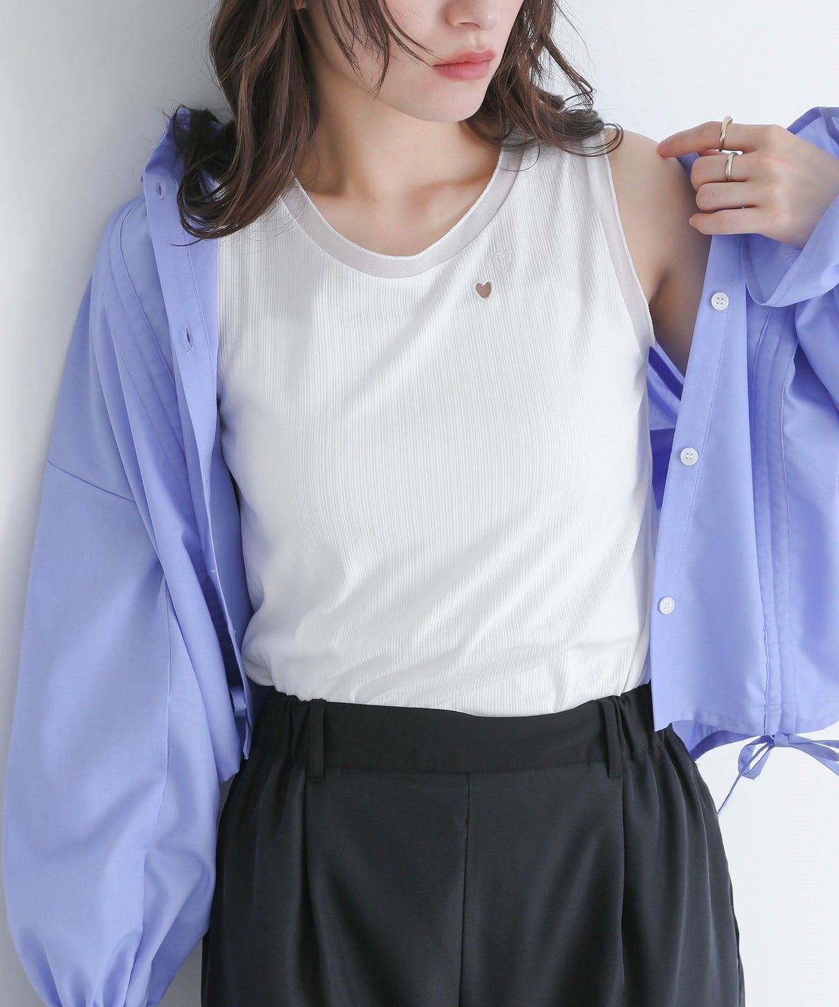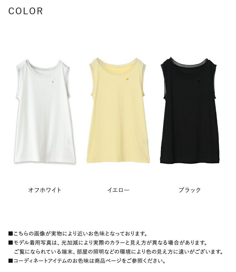 他の画像を見る 選べる2サイズ展開!ハート刺繍とカットアウトデザインのタンクトップ。 『somari imaginationハート刺繍シアー切り替えタンクトップ』※メール便可※【5】 ¥ 2,990 税込 5.00 (1)