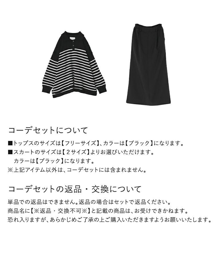 他の画像を見る 送料無料★届いてすぐにお洒落に変身2点コーデSET♪ 【送料無料】『パネルボーダーニットポロ×ツイルナロースカートコーデ2点SET』【メール便不可】【40】 ¥ 8,940 税込 (0)