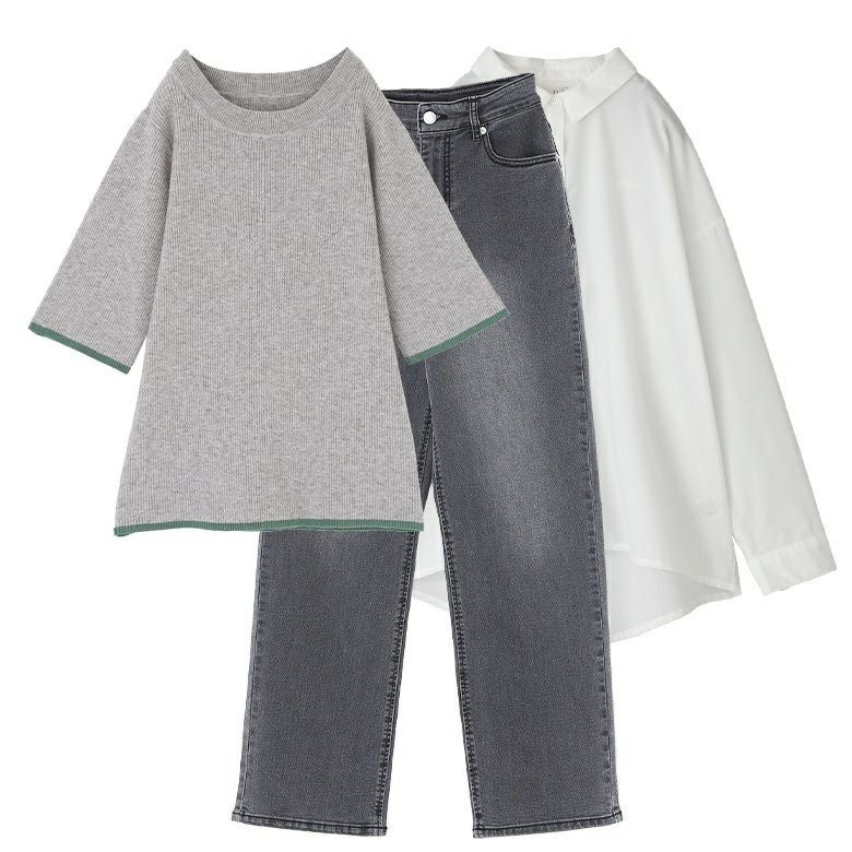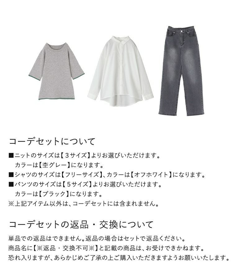 他の画像を見る 送料無料★届いてすぐにお洒落に変身3点コーデSET♪ 【送料無料】『お腹すっきりデニムパンツ×配色ライン5分袖リブニット×バックボタンスリットシャツコーデ3点SET』※返品交換不可※【メール便不可】【35】 ¥ 10,910 税込 (0)