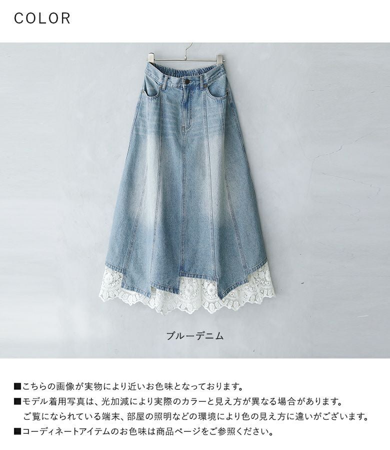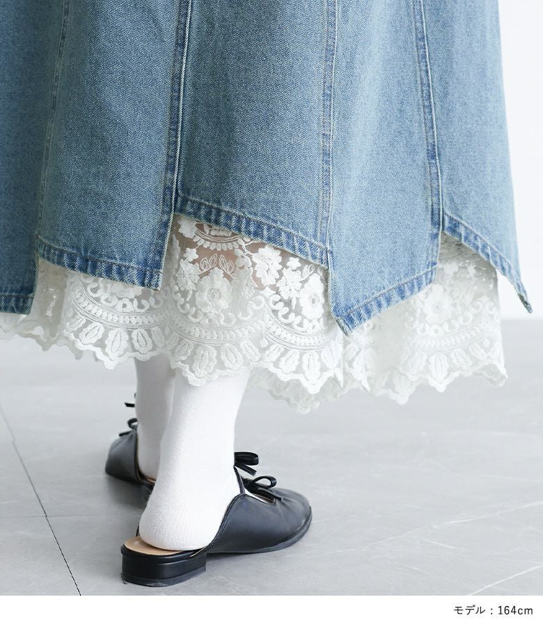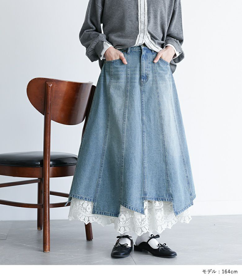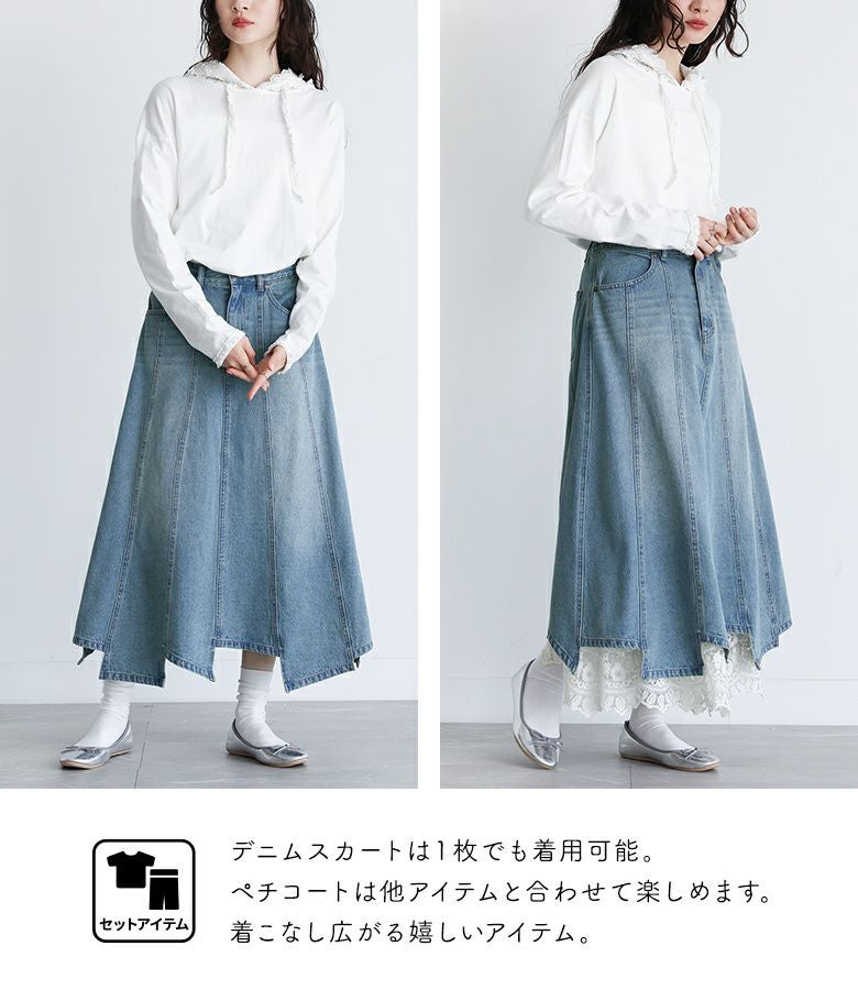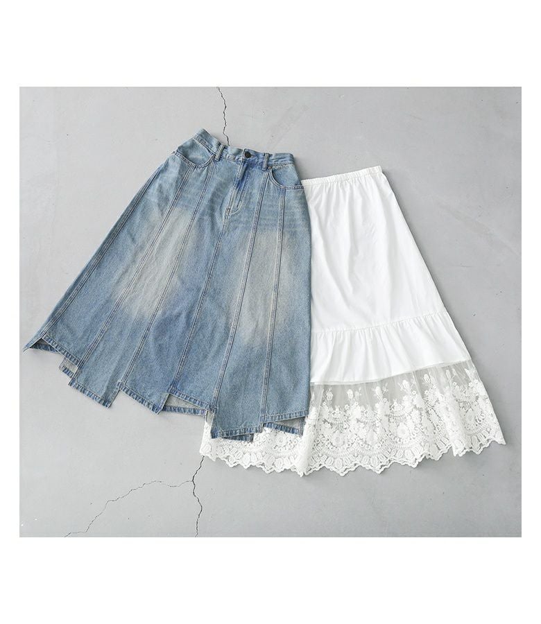 他の画像を見る 特別感溢れるペチコート付きデニムスカートセット。 【送料無料】『somari imaginationレースペチ付きアシメ切替デニムスカート』【メール便不可】【30】 ¥ 10,980 税込 2.75 (4)