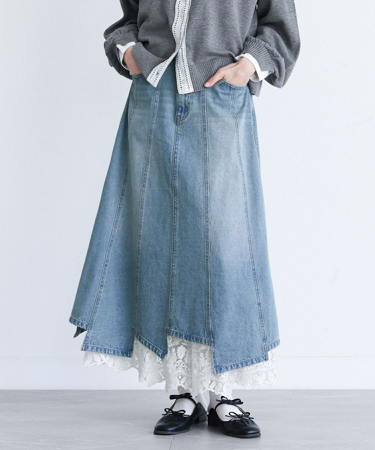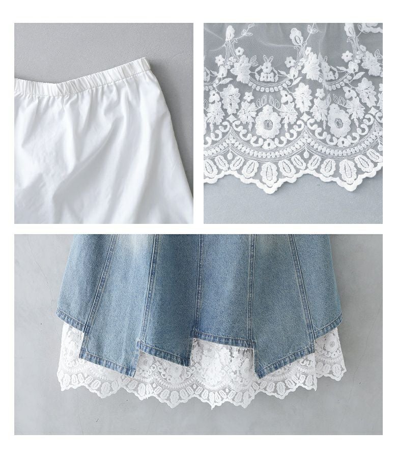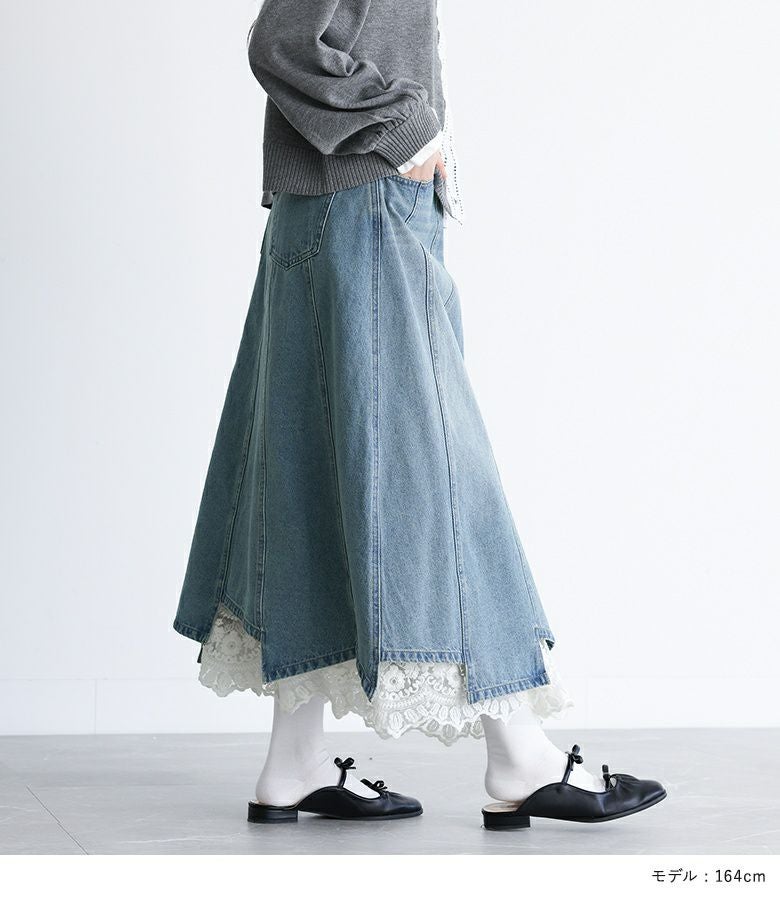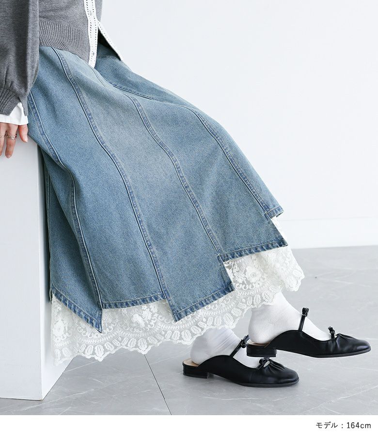 他の画像を見る 特別感溢れるペチコート付きデニムスカートセット。 【送料無料】『somari imaginationレースペチ付きアシメ切替デニムスカート』【メール便不可】【30】 ¥ 10,980 税込 2.75 (4)