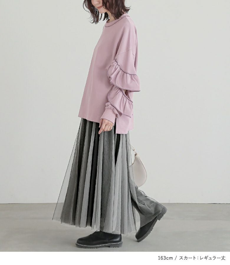 他の画像を見る 送料無料★届いてすぐにお洒落に変身2点コーデSET♪ 【送料無料】『フリル袖デザインスウェット×配色ボリュームチュールスカートコーデ2点SET』【メール便不可】【30】 ¥ 8,970 税込 (0)