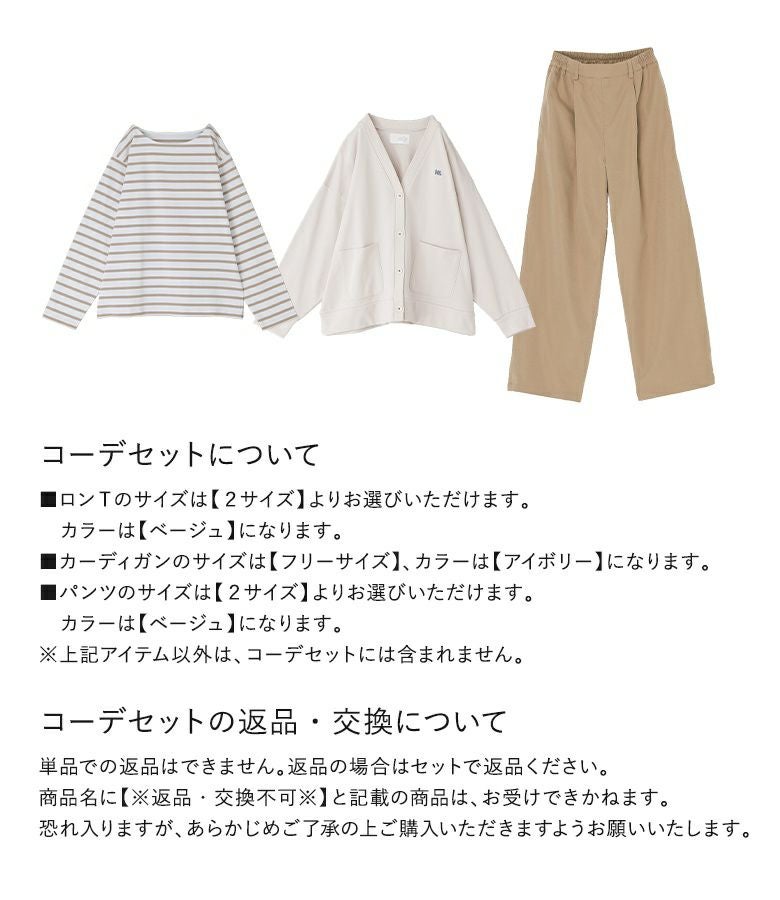 他の画像を見る 送料無料★届いてすぐにお洒落に変身3点コーデSET♪ 【送料無料】『サイドタックパンツ×ボーダーバスクロンT×スウェットロゴカーディガンコーデ3点SET』【メール便不可】【70】 ¥ 12,530 税込 (0)