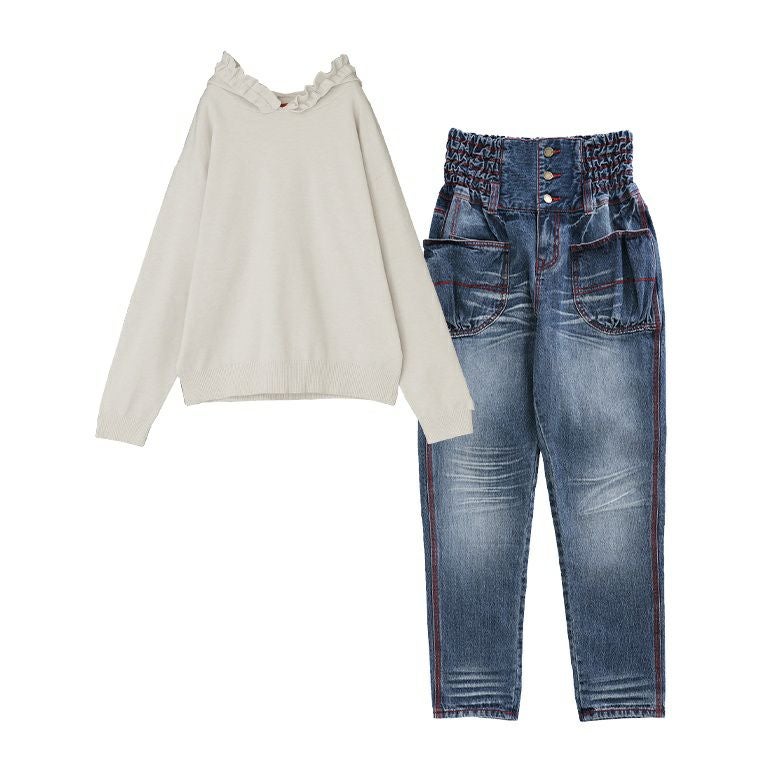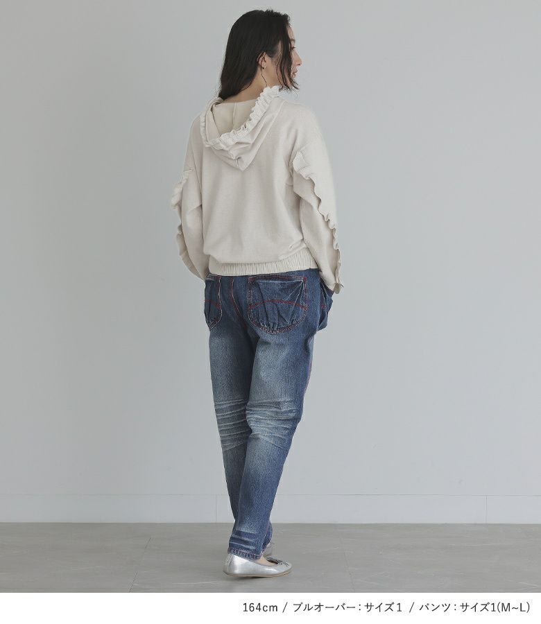 他の画像を見る 送料無料★届いてすぐにお洒落に変身2点コーデSET♪ 【送料無料】『フリルフードニットプルオーバー×赤ステッチサルエルdesignデニムコーデ2点SET』【メール便不可】【40】 ¥ 14,960 税込 (0)
