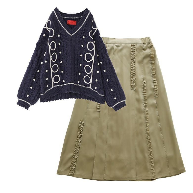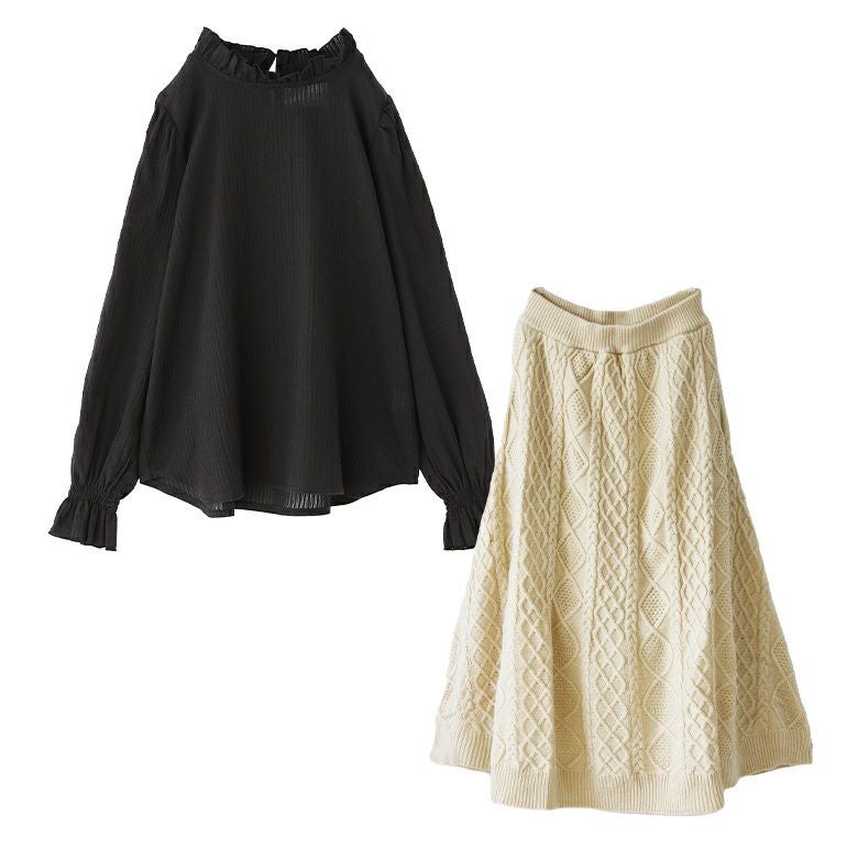 他の画像を見る 送料無料★届いてすぐにお洒落に変身2点コーデSET♪ 【送料無料】『ライン配色ケーブルニット×縦フリルタックプリーツスカートコーデ2点SET』【メール便不可】【70】 ¥ 16,960 税込 (0)